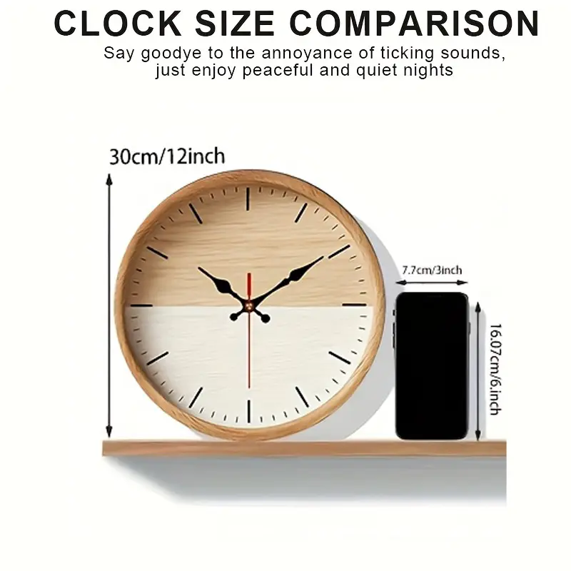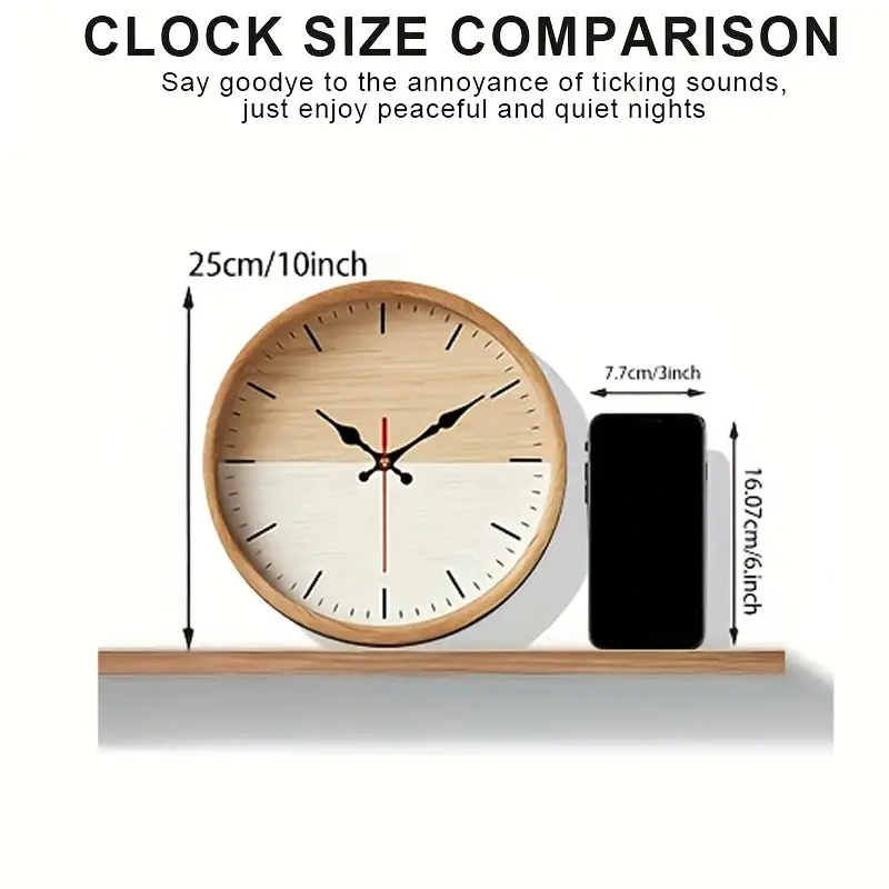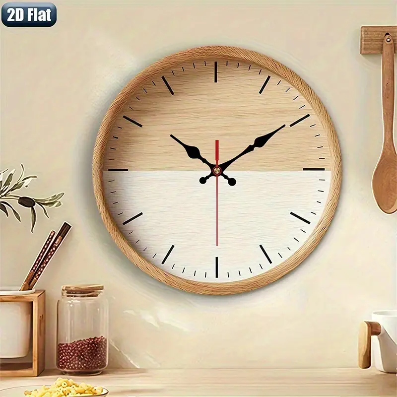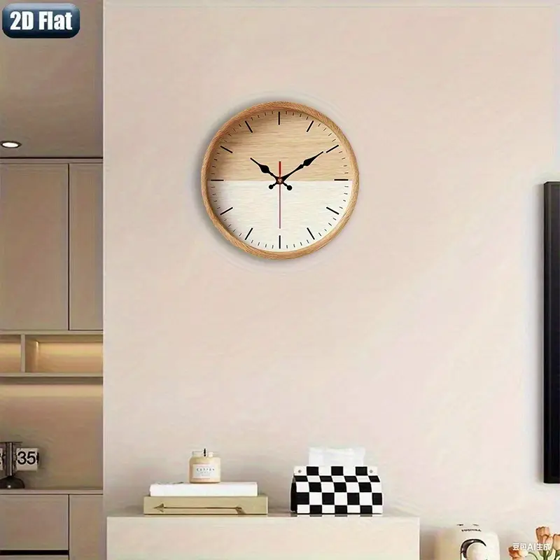 2D Flat. 1pc. Natural Wood Grain Themed Wall Clock, Silent Decorative Clock, Creative Wall Clock, Suitable for Decorating Bedrooms, Living Rooms, And Offices, Available in 25/30 cm (Batteries Not Included)