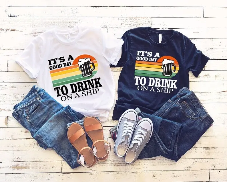 5. Funny Captain T-Shirt: It's a Good Day to Drink on a Ship, Couple T-Shirt
