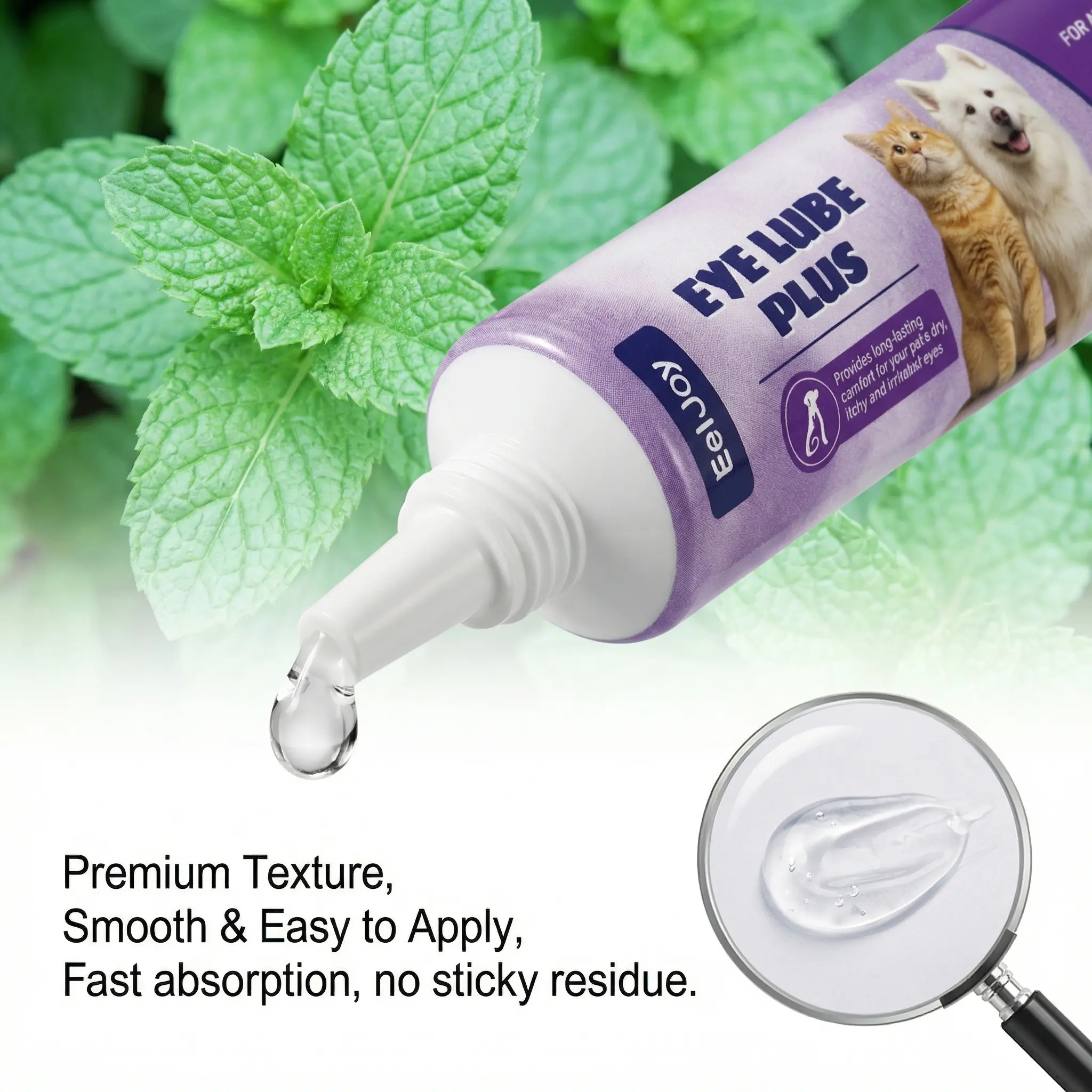 Our pet eye tear stain ointment is carefully formulated with hyaluronic acid and mint leaf. It is designed to provide lasting eye comfort and reduce dryness and discomfort. It is extremely easy to use: clean and dry the skin around the eyes. Open the cap and apply the ointment directly to your pet's eyelids. It is also adapted to your pet's physiological needs, non-irritating and tear-free