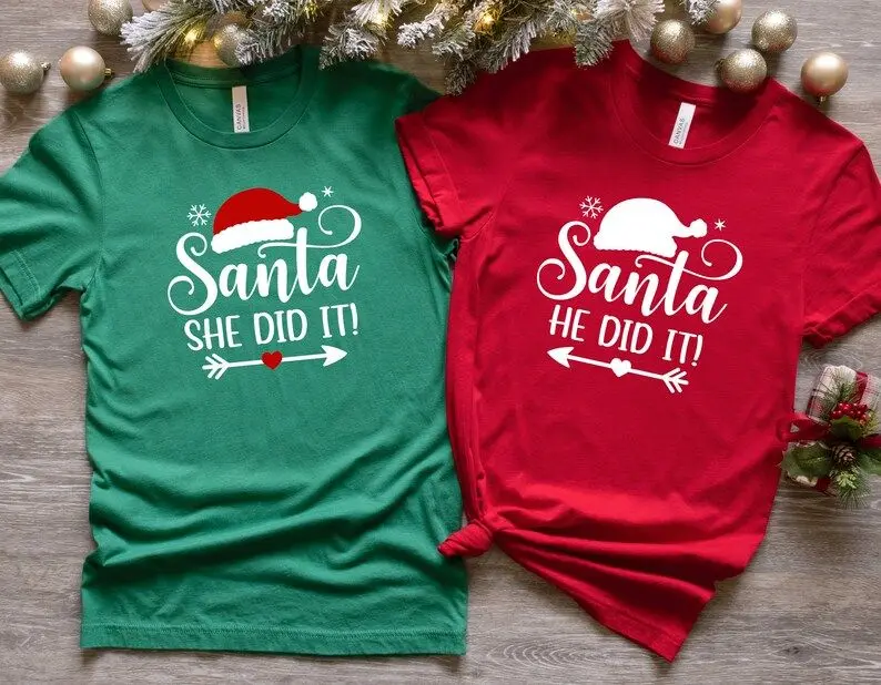Dear Santa He & She Did It Tshirt,Christmas Shirts,Christmas Party Shirt,Christmas Family Matching Shirt,Christmas Couple Shirt,Dear Santa