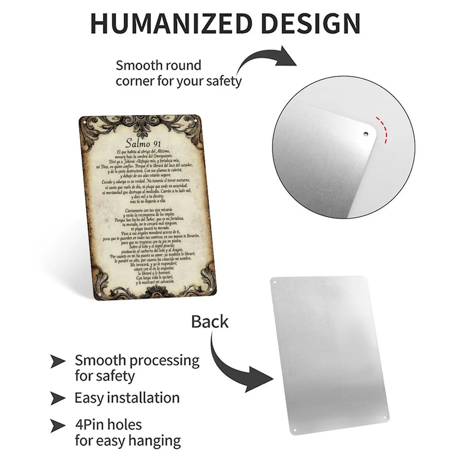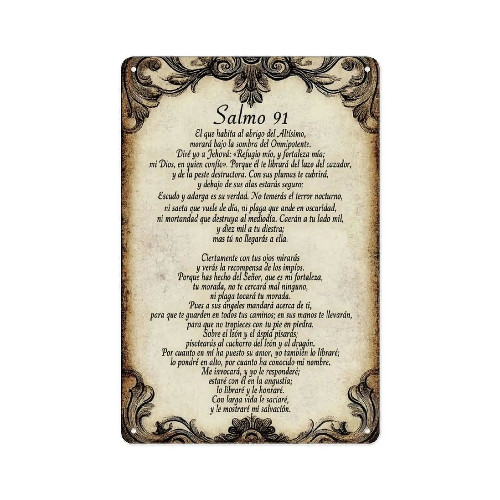 "Salmo 91" Psalm 91 Religious Metal Sign, Spanish Bible Verse Wall Art for Faithful Home Decor