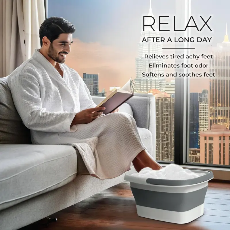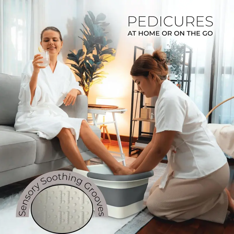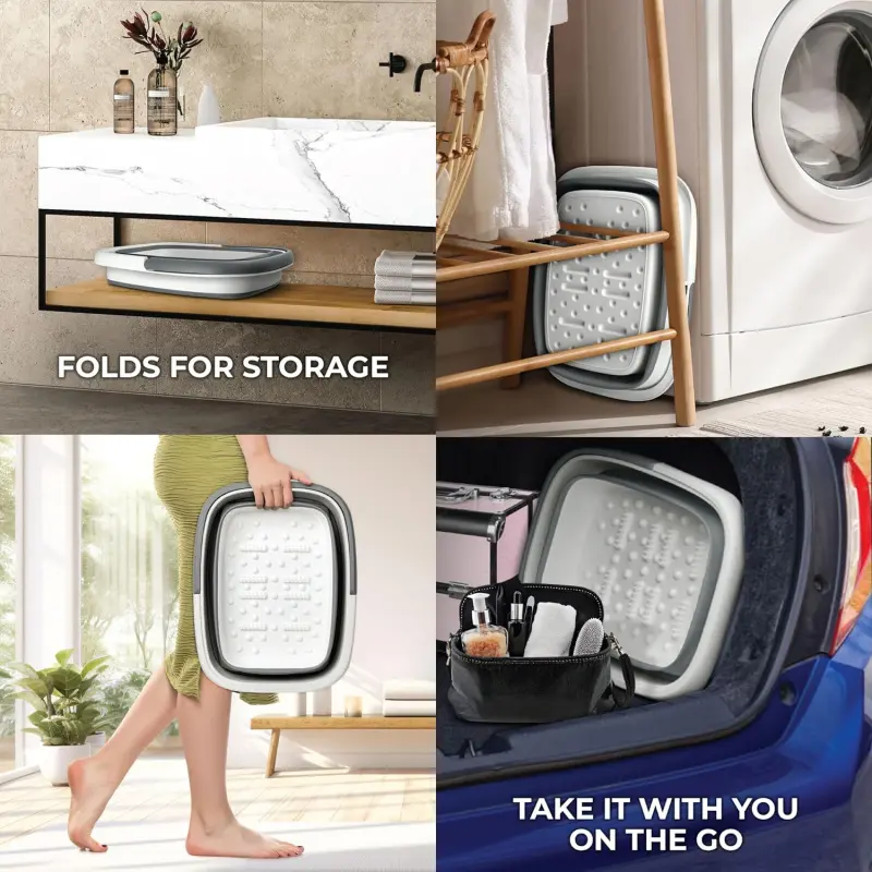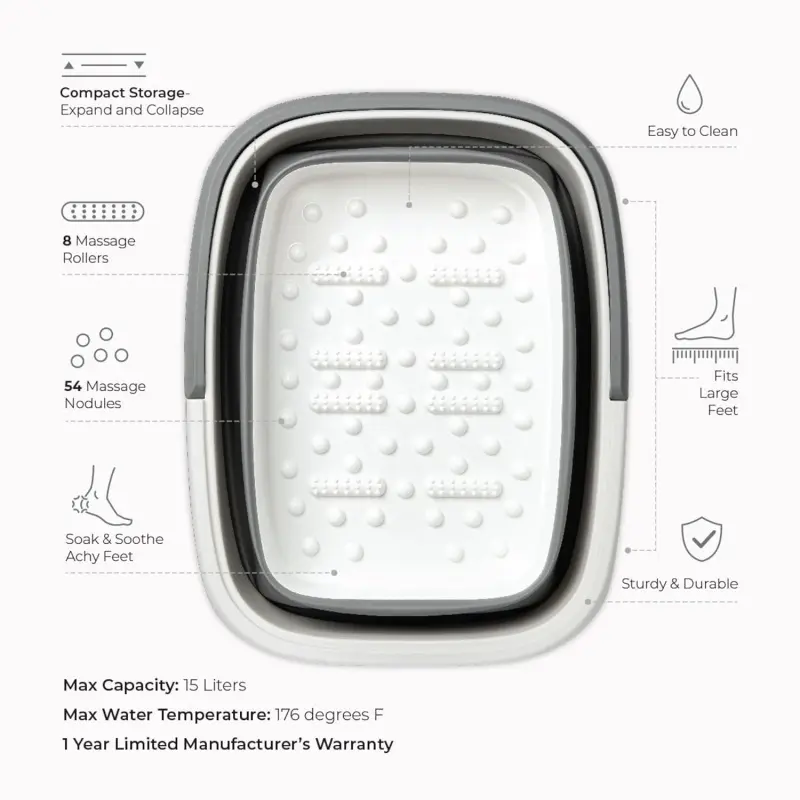 Collapsible Foot Bath Foot Soaking Tub | Portable Foot Spa Pedicure Bowl | Large Basin to Soak & Wash Feet | Folding Bucket with Carry Handle | White & Grey, Blue, Green [White & Grey]