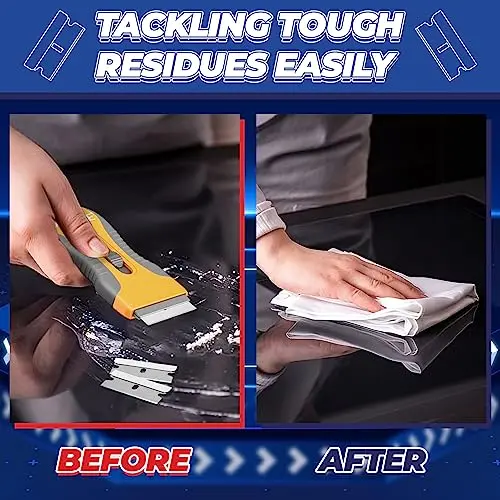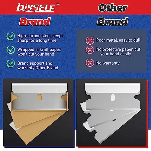 LONG-TERM USE: With 100-pack single edge razor blades included in the set, you can use them for an extended period. This is especially useful for those who need to use razor blade scraper regularly, ensuring they have an ample supply of blades for an extended period.