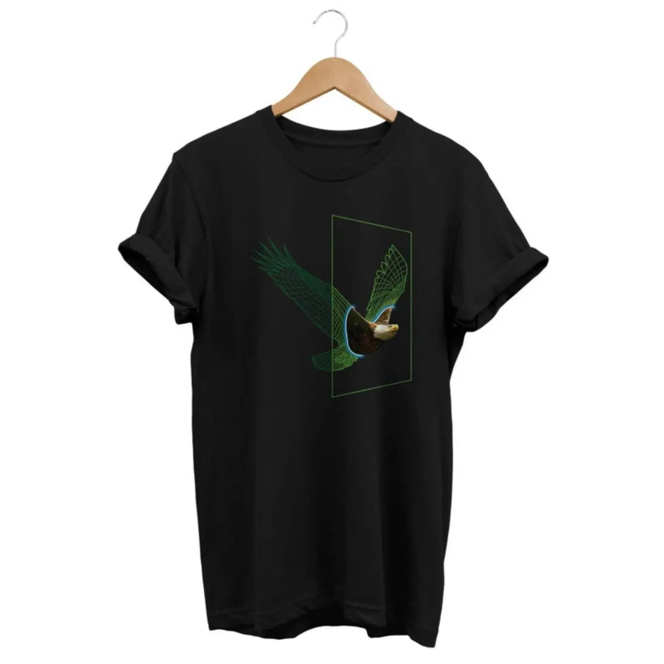 Men's abstract eagle and portal Graphic T-Shirt - Short Sleeve Crew Neck Regular Fit Casual Wear | Soft & Breathable Fabric, Durable Print, Everyday Comfort, Machine Washable, artistic geometric eagle flying through a geometric portal