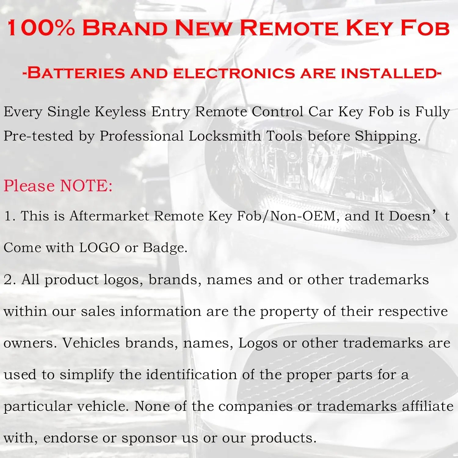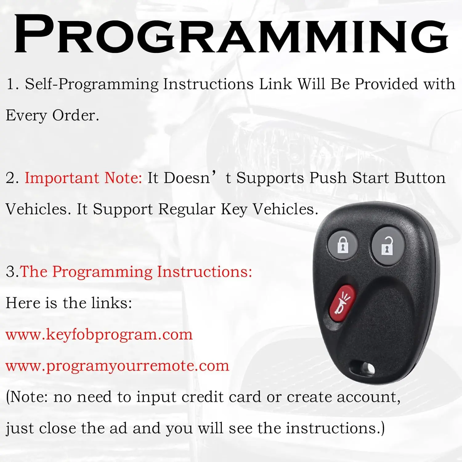 ⭐ 4.3 out of 5 stars from 62 reviews. Prices range from $9.95 to $14.95. This is an aftermarket remote, not OEM. It doesn't include logos or badges. All trademarks are the property of their respective owners.