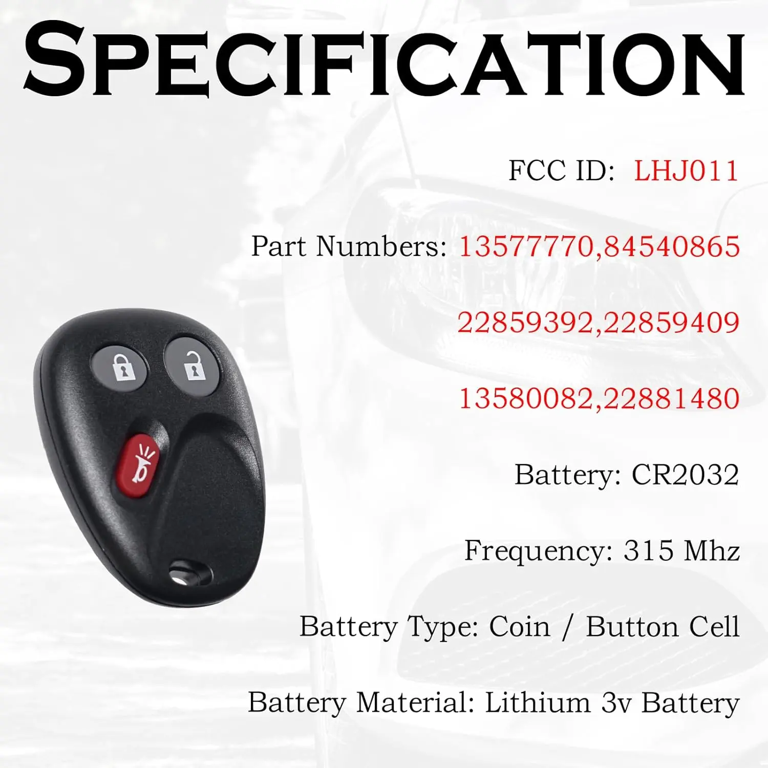 ·Frequency: 315 Mhz
