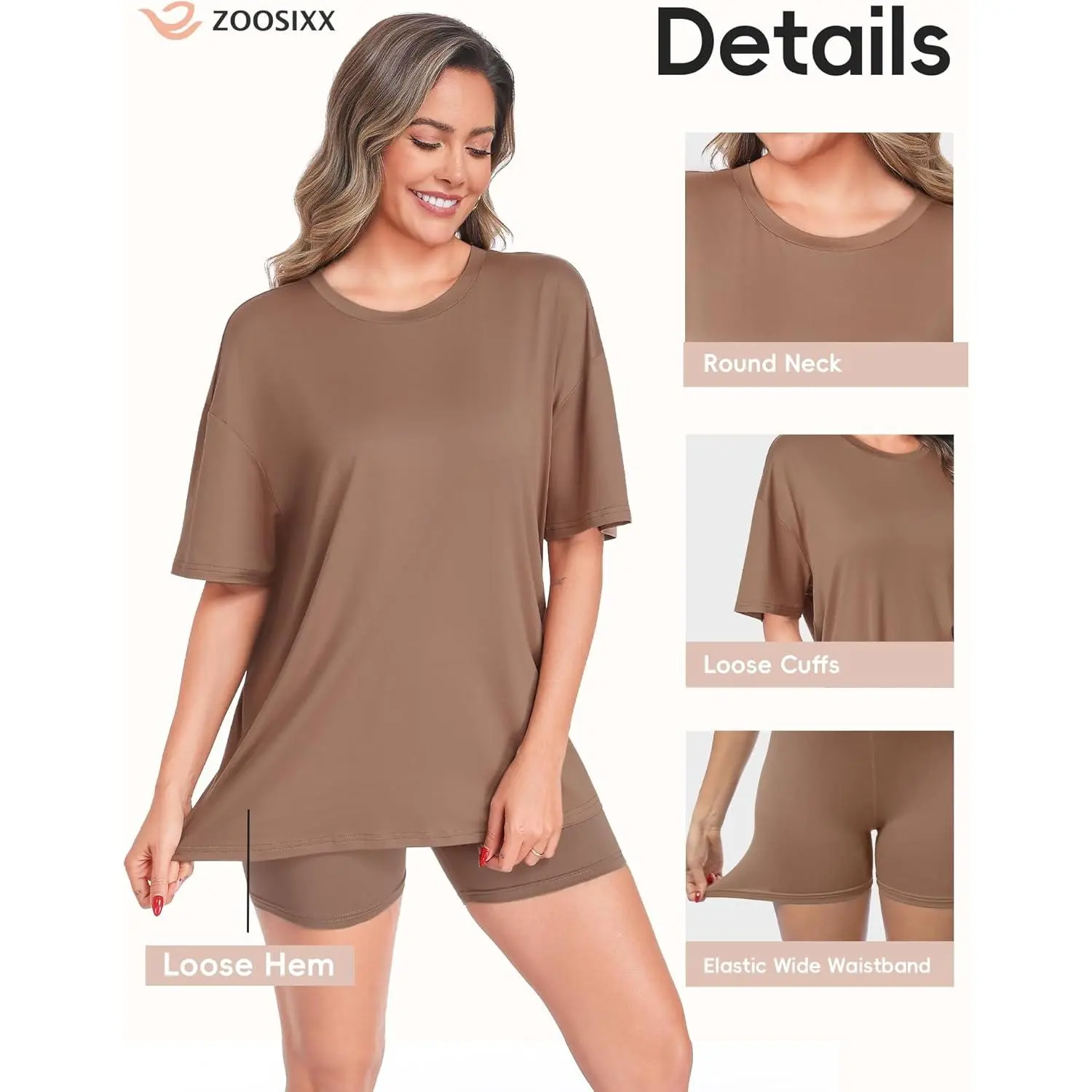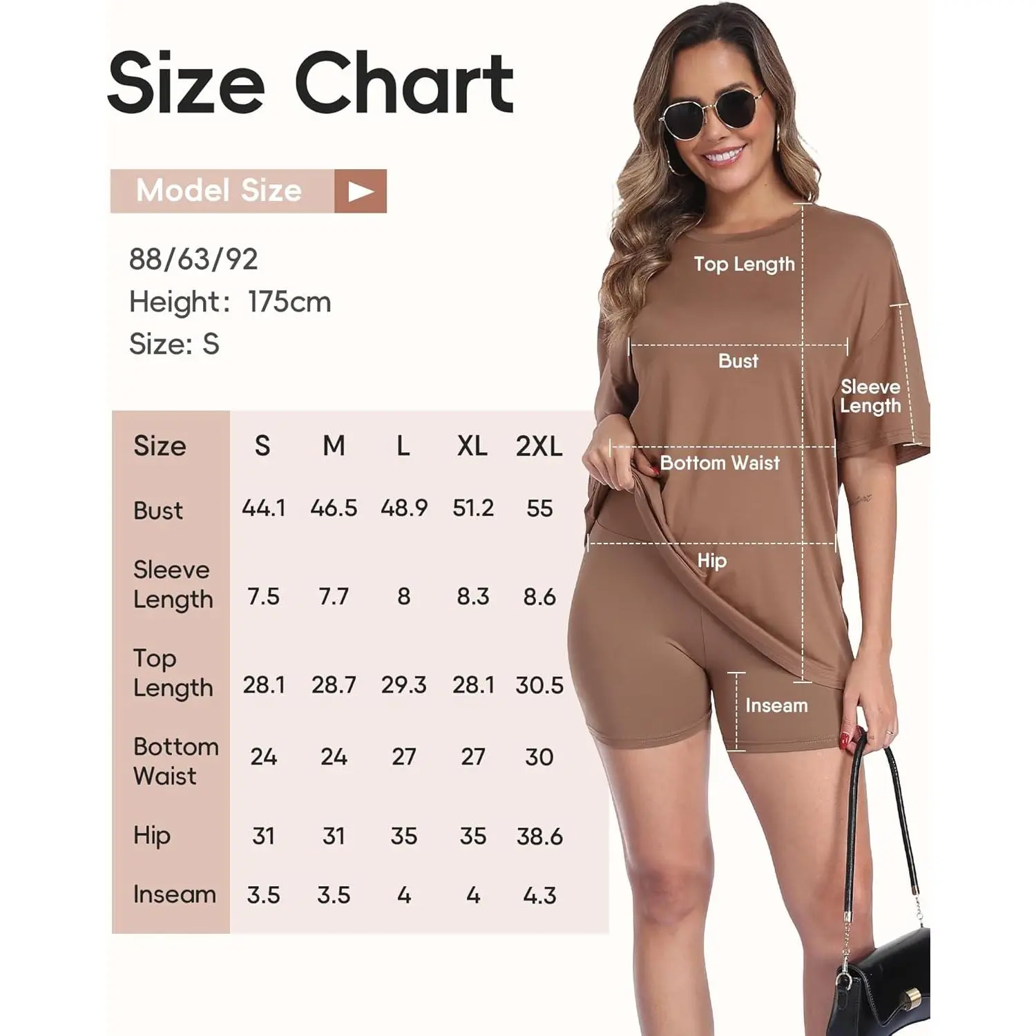 2 Piece Sets for Women Summer - Oversized T-Shirt and Biker Shorts Lounge Sets Matching Outfit for Travel Casual