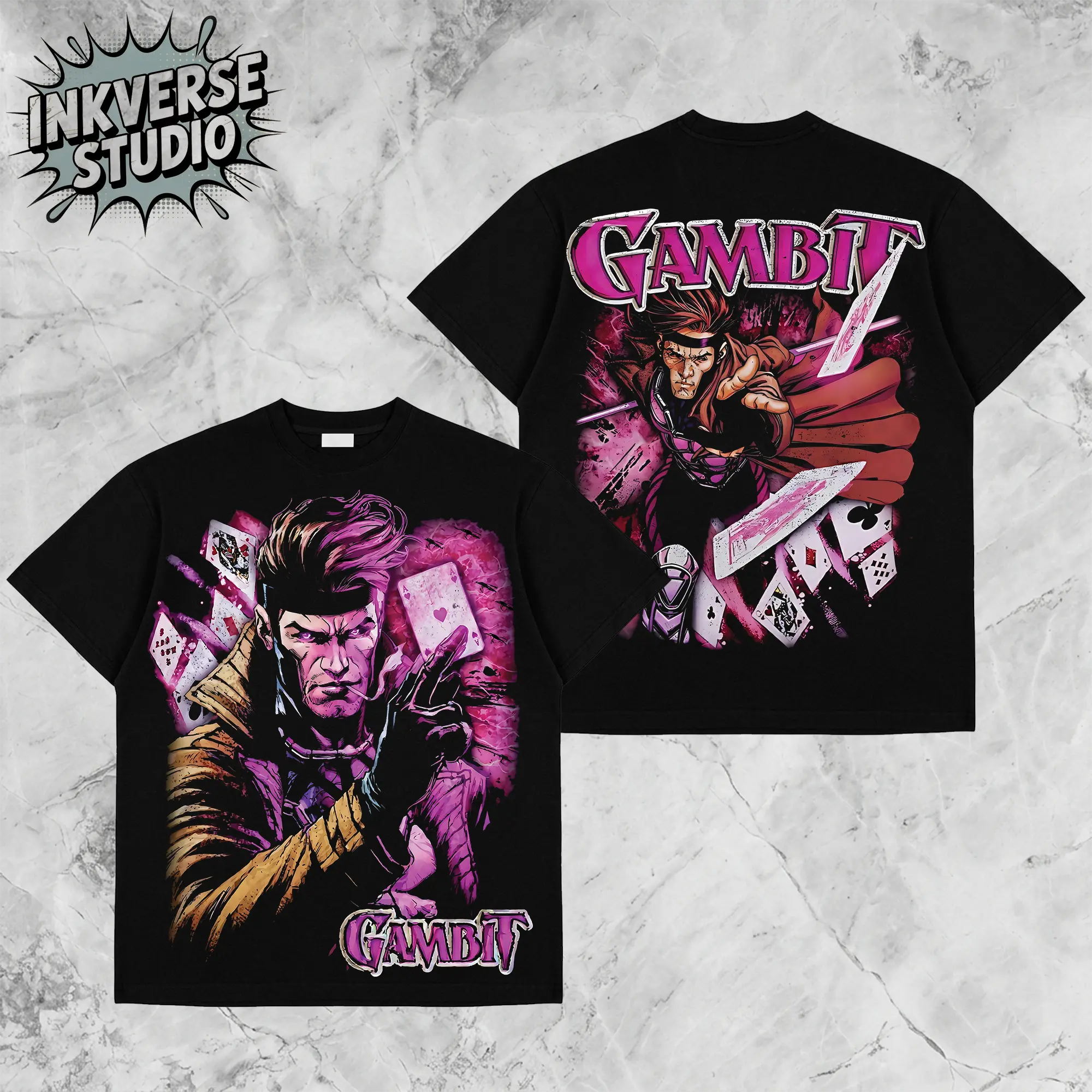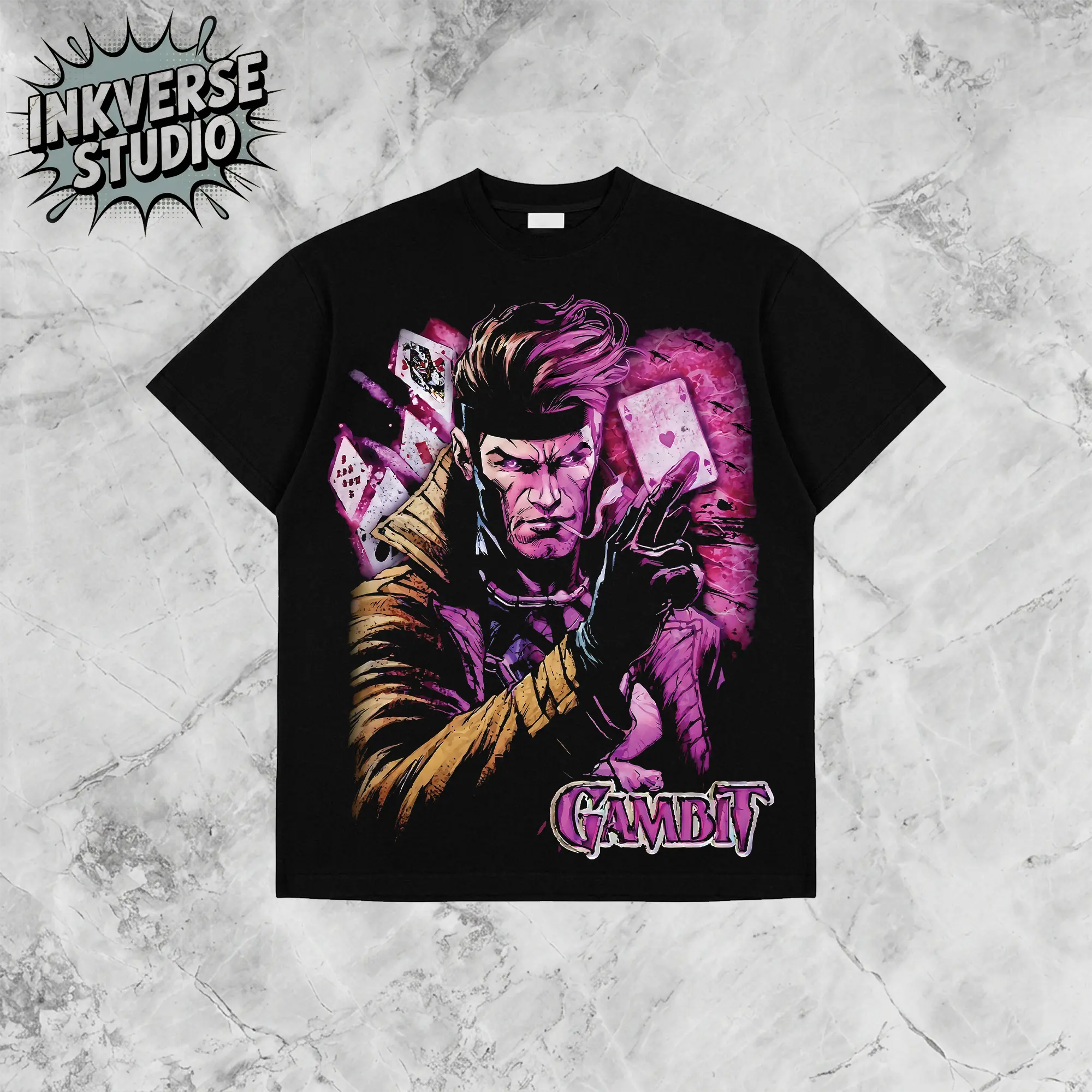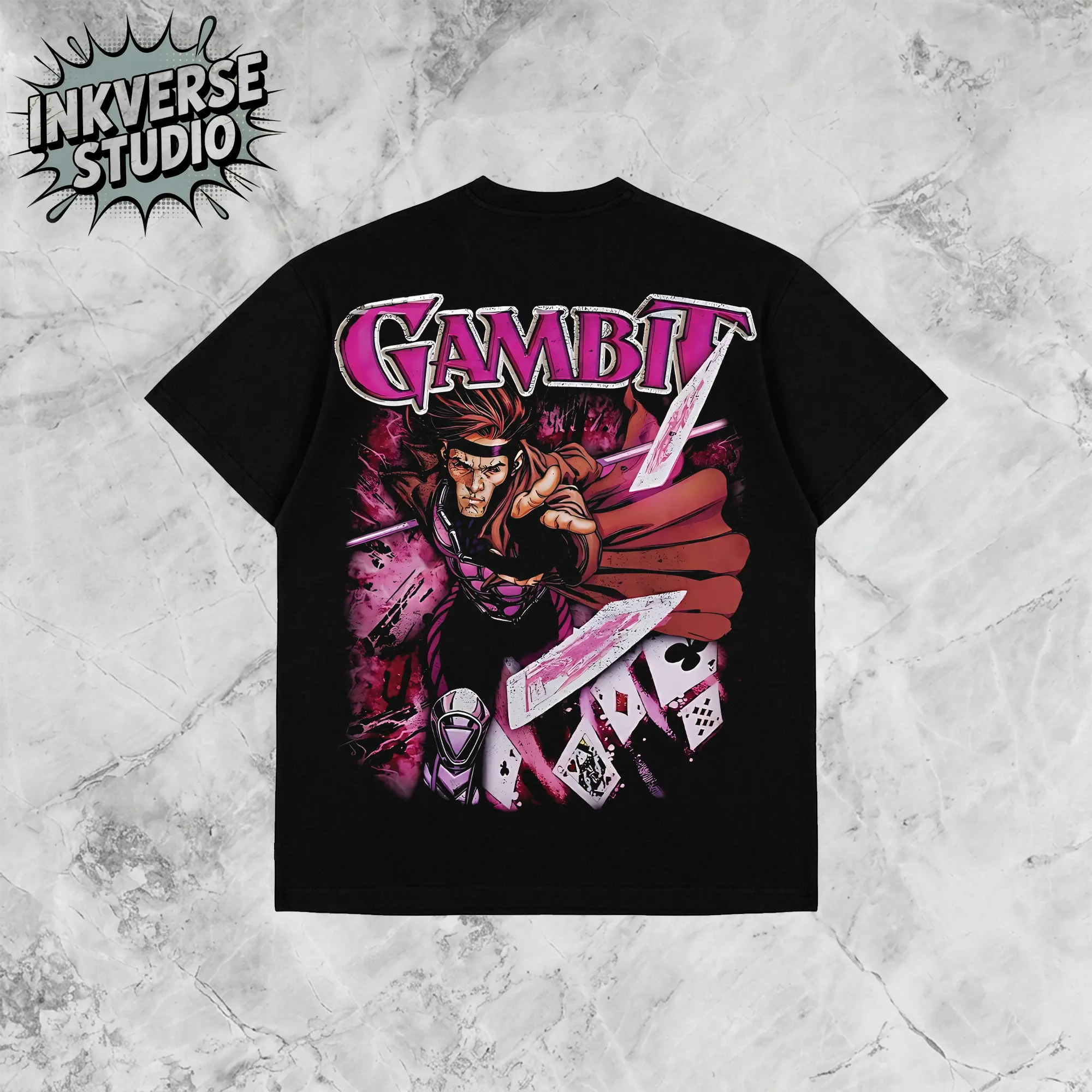 5. InkVerse Limited Edition Gambit X-Men Cards Charge Graphic Tee, Marvel Mutant Hero Remy LeBeau Design T Shirt, Comic Illustration Style, Oversized Streetwear Unisex Tee, Vintage Style, Gift for Fans