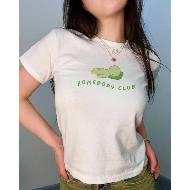 Cozy Homebody Baby Tee – Cute Minimal Graphic, Y2K Aesthetic Outfit for Relaxed Girls