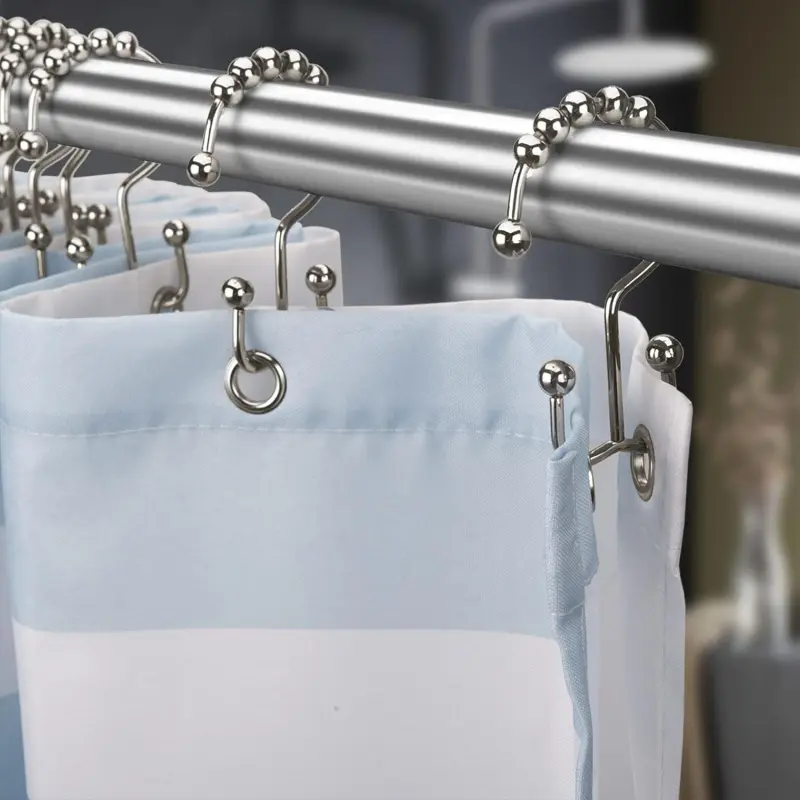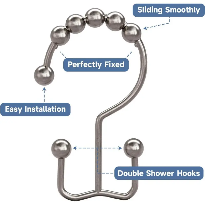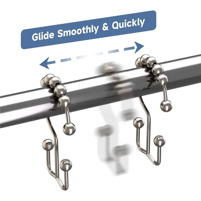 Smooth gliding - Engineered spherical roller balls of shower curtain hooks can glide smoothly and fast across shower rod.