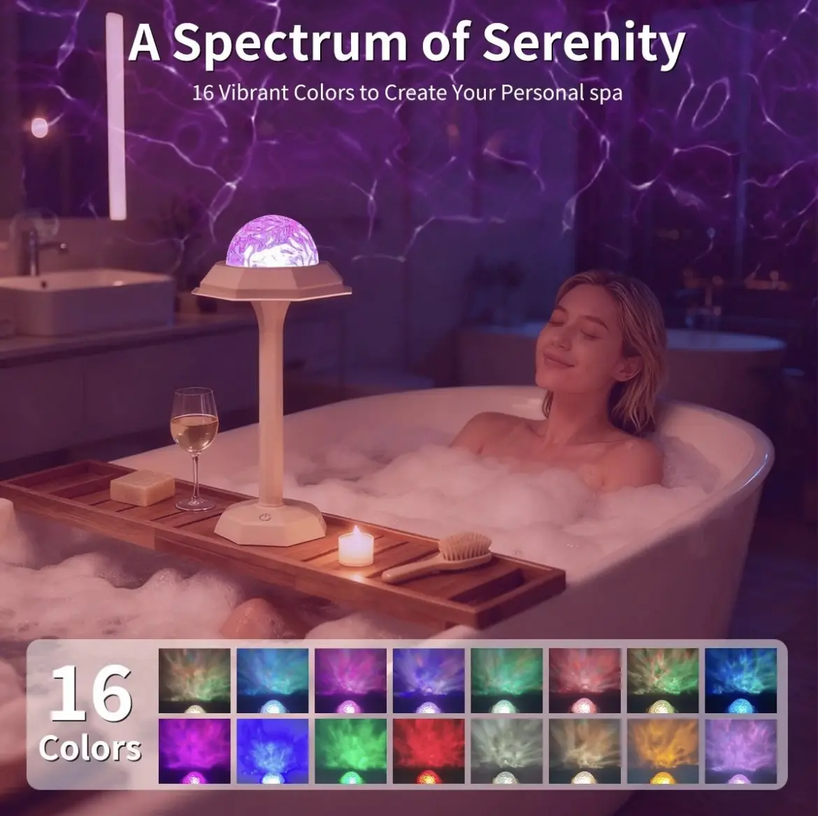 Create a relaxing spa-like atmosphere with this 2-in-1 waterproof ocean wave lamp. Use it as an RGB ambient table lamp or remove the cover to project beautiful ocean wave lighting effects. Perfect for showers, bedrooms, or living rooms.