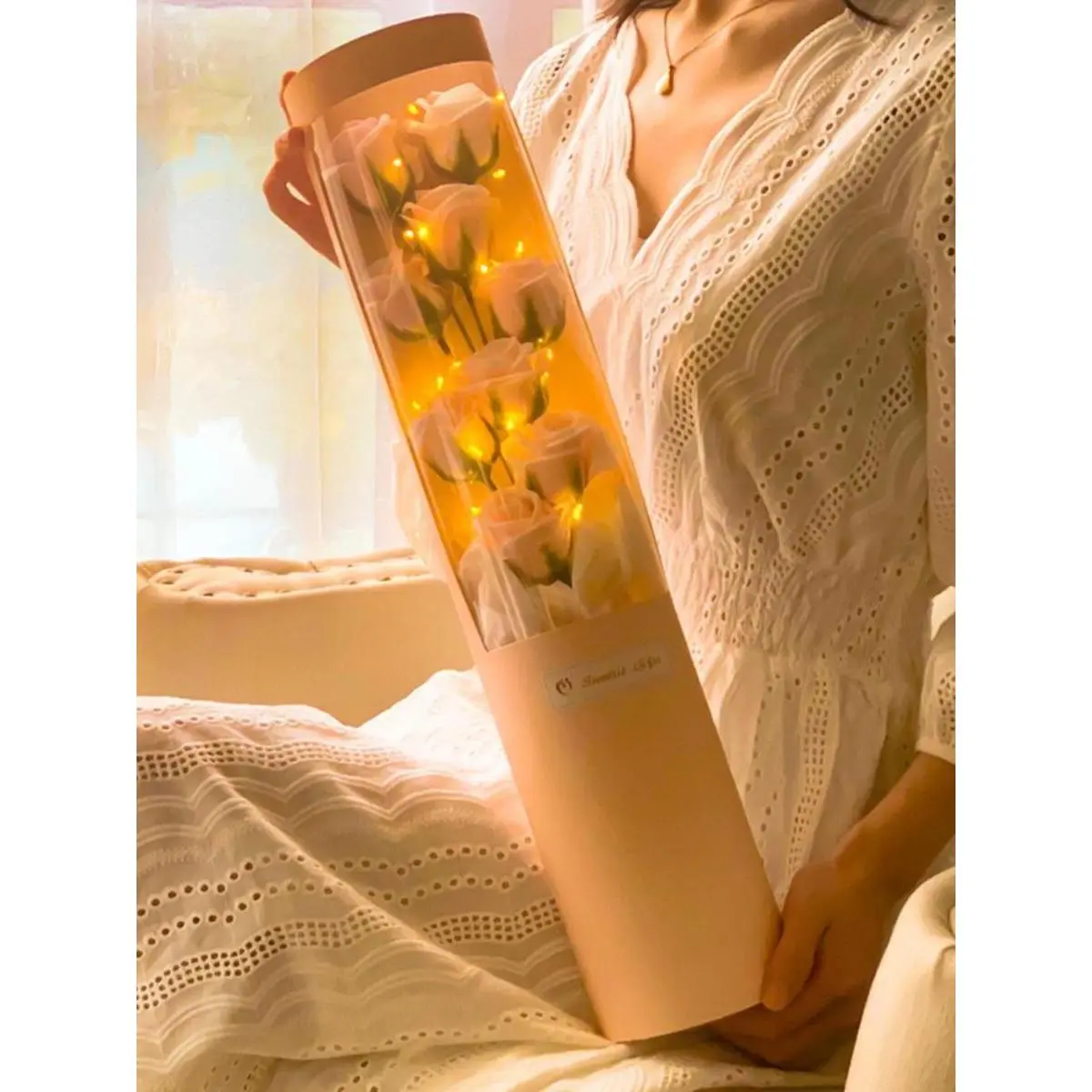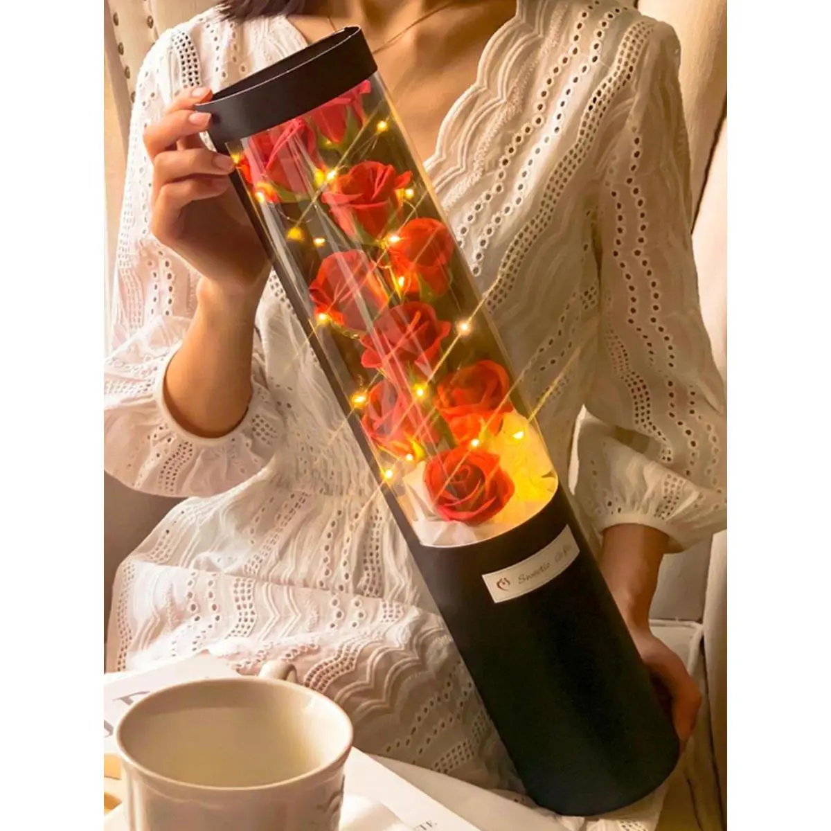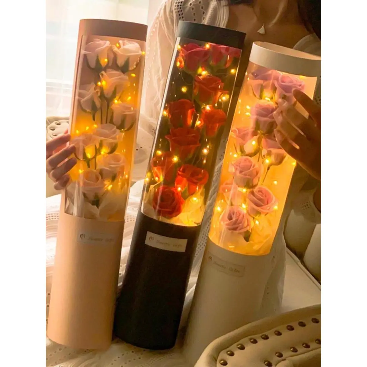 Valentine's Day Custom Rose Bouquet Hug Bucket, Realistic Artificial Flowers, Star Lights, Anniversary Romantic Gift, Wedding Party Decor