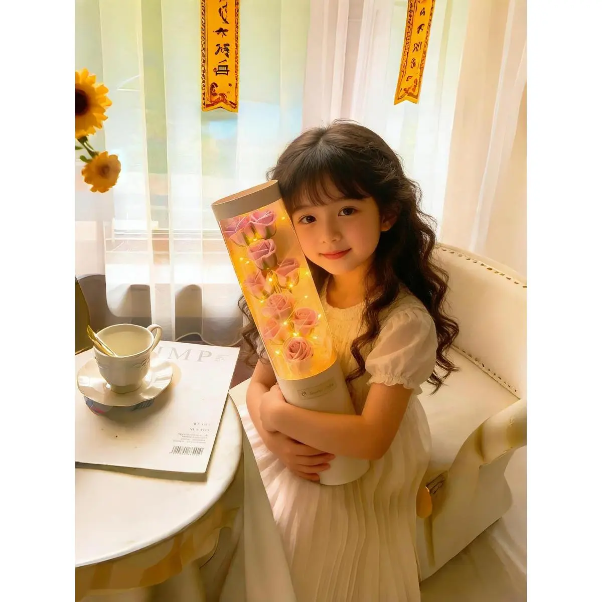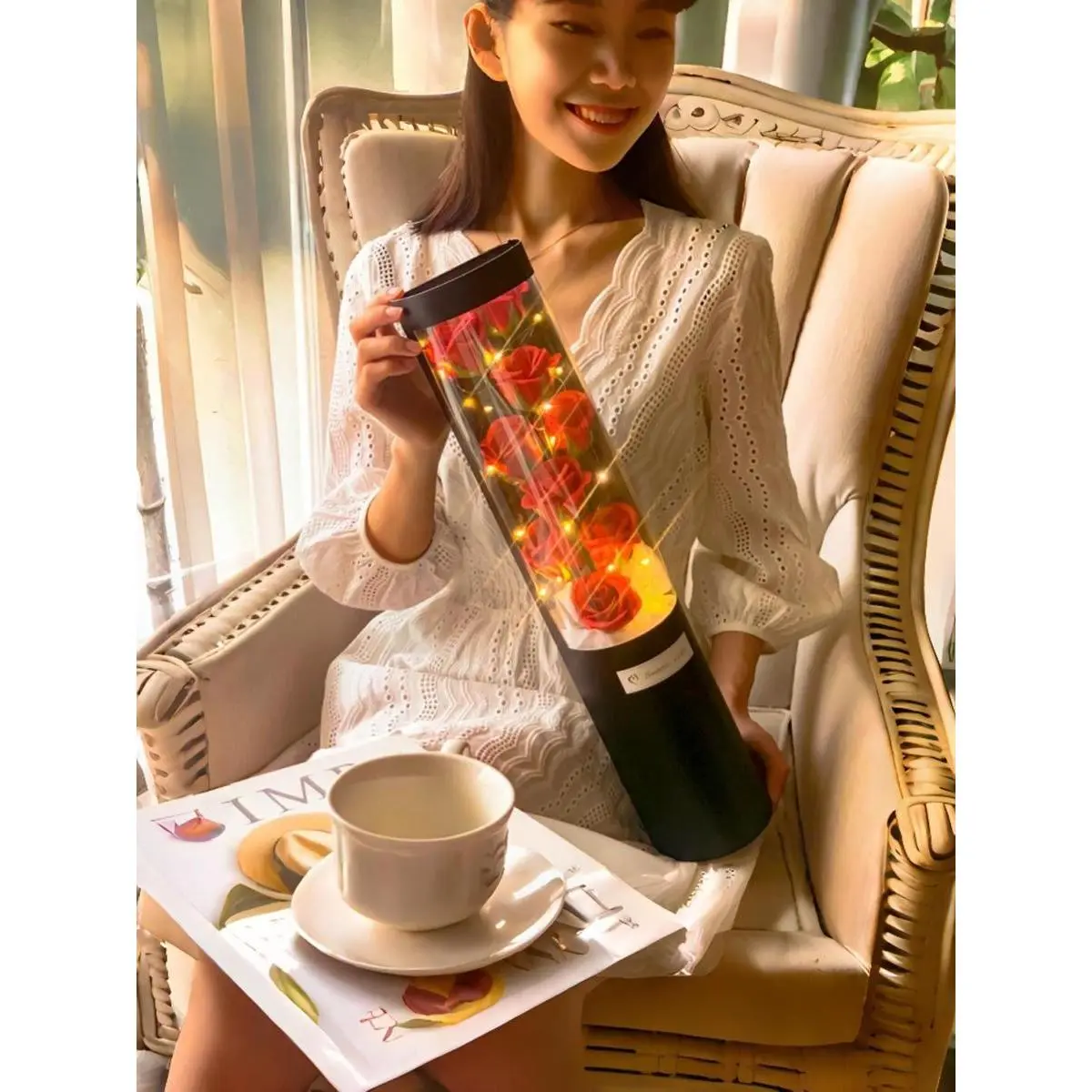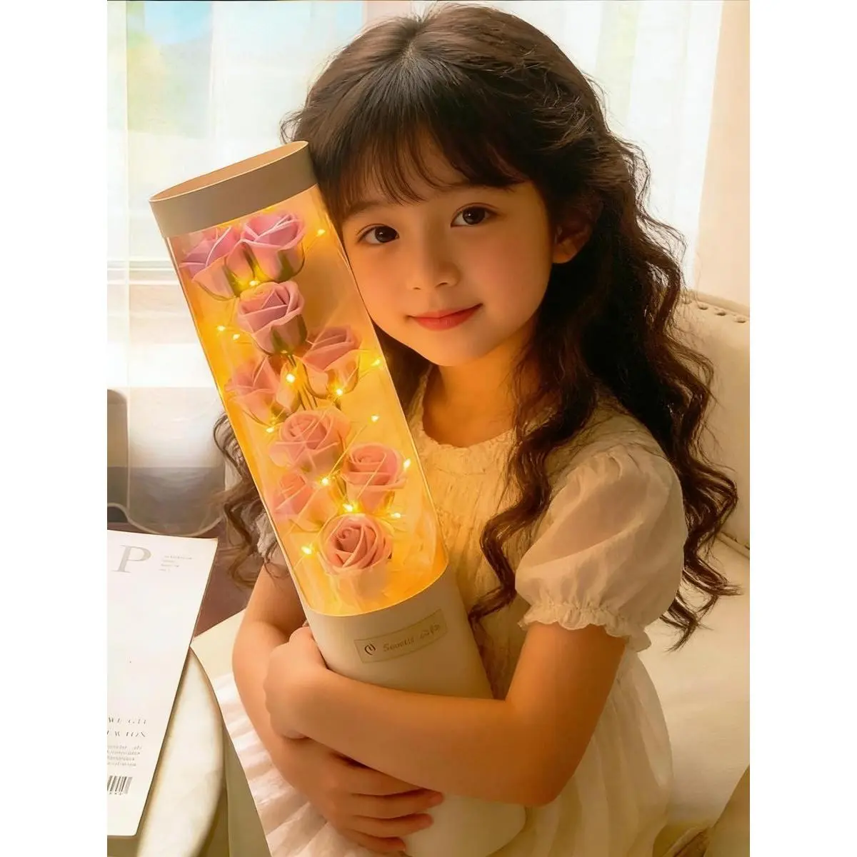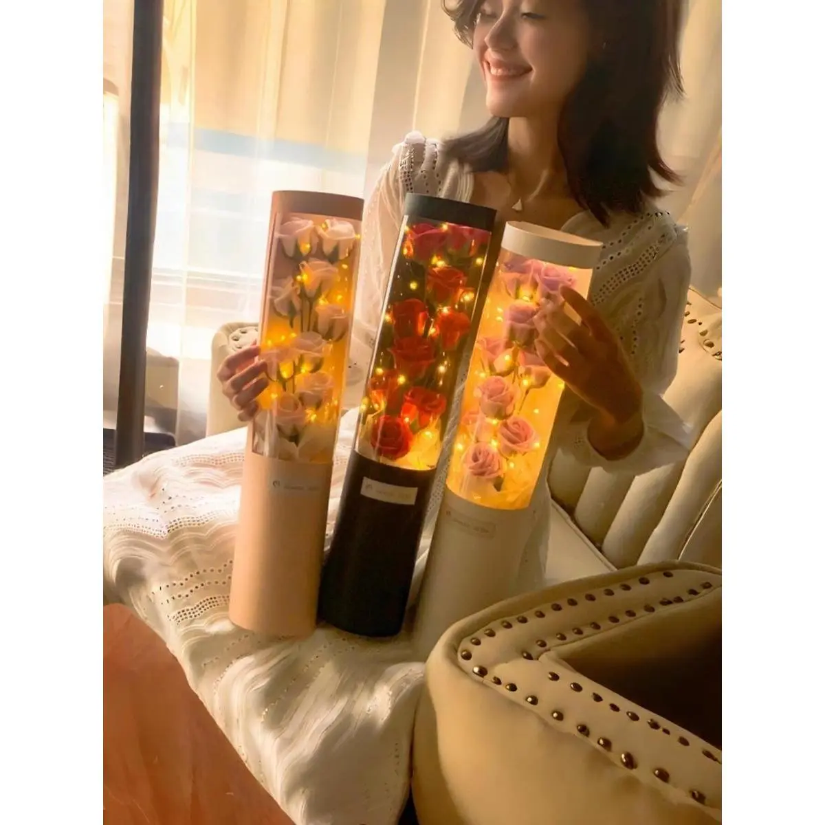 Valentine's Day Custom Rose Bouquet Hug Bucket, Realistic Artificial Flowers, Star Lights, Anniversary Romantic Gift, Wedding Party Decor