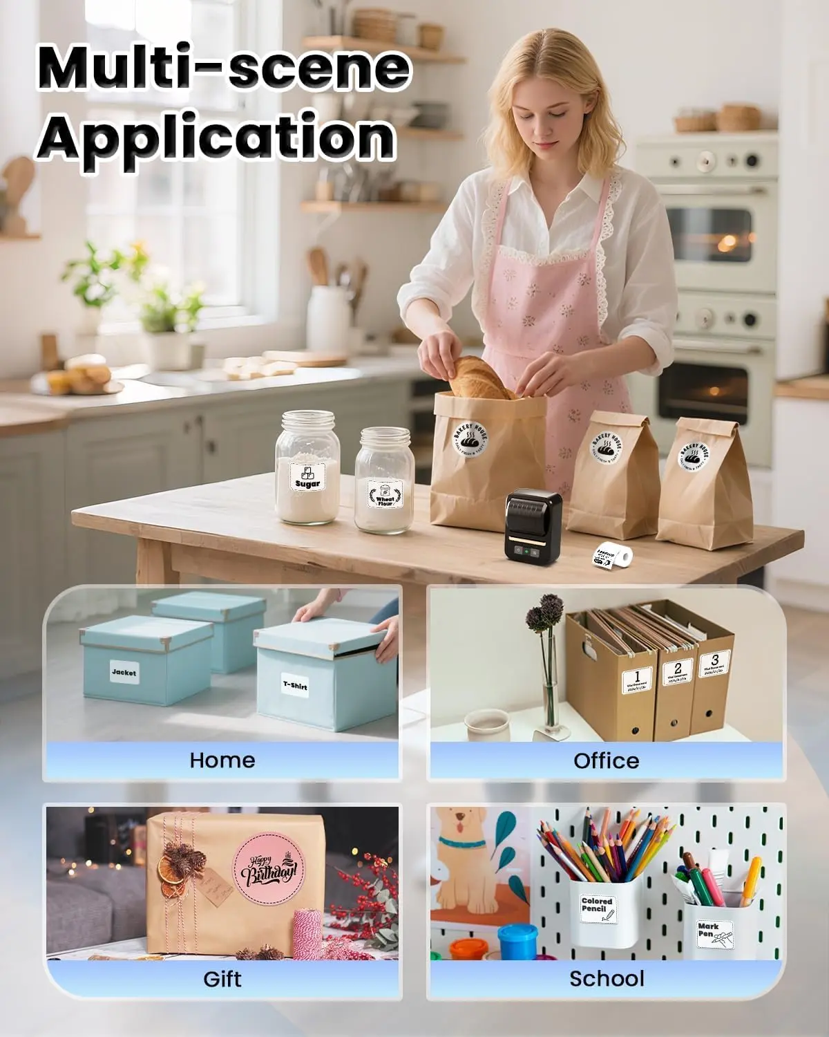 ·Widely Use: This 2 inch label printer is ideal for small business, office, school, retail store and home organization like storage box, bottle, jar, food container, homemade food, bakery, jewelry, price tags, QR code, address, barcode and logo, name tag, folder, documentation. Whether for Halloween, Thanksgiving and Christmas, this Sticker Printer serves as an excellent gift choice