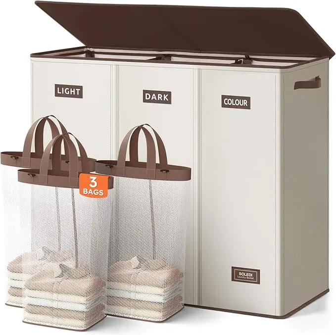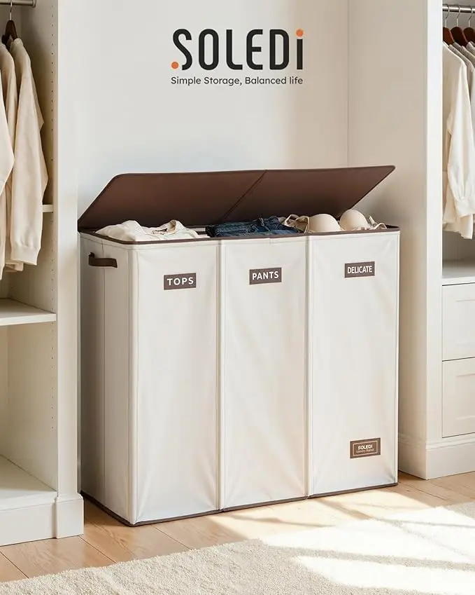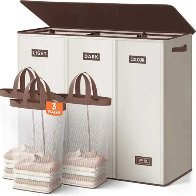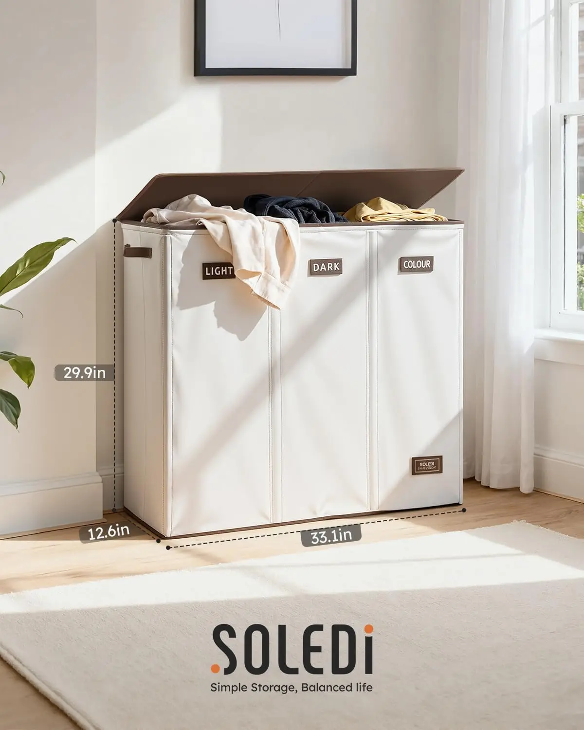 SOLEDI 200L 3-Section Laundry Hamper – Stylish, Durable & Practical