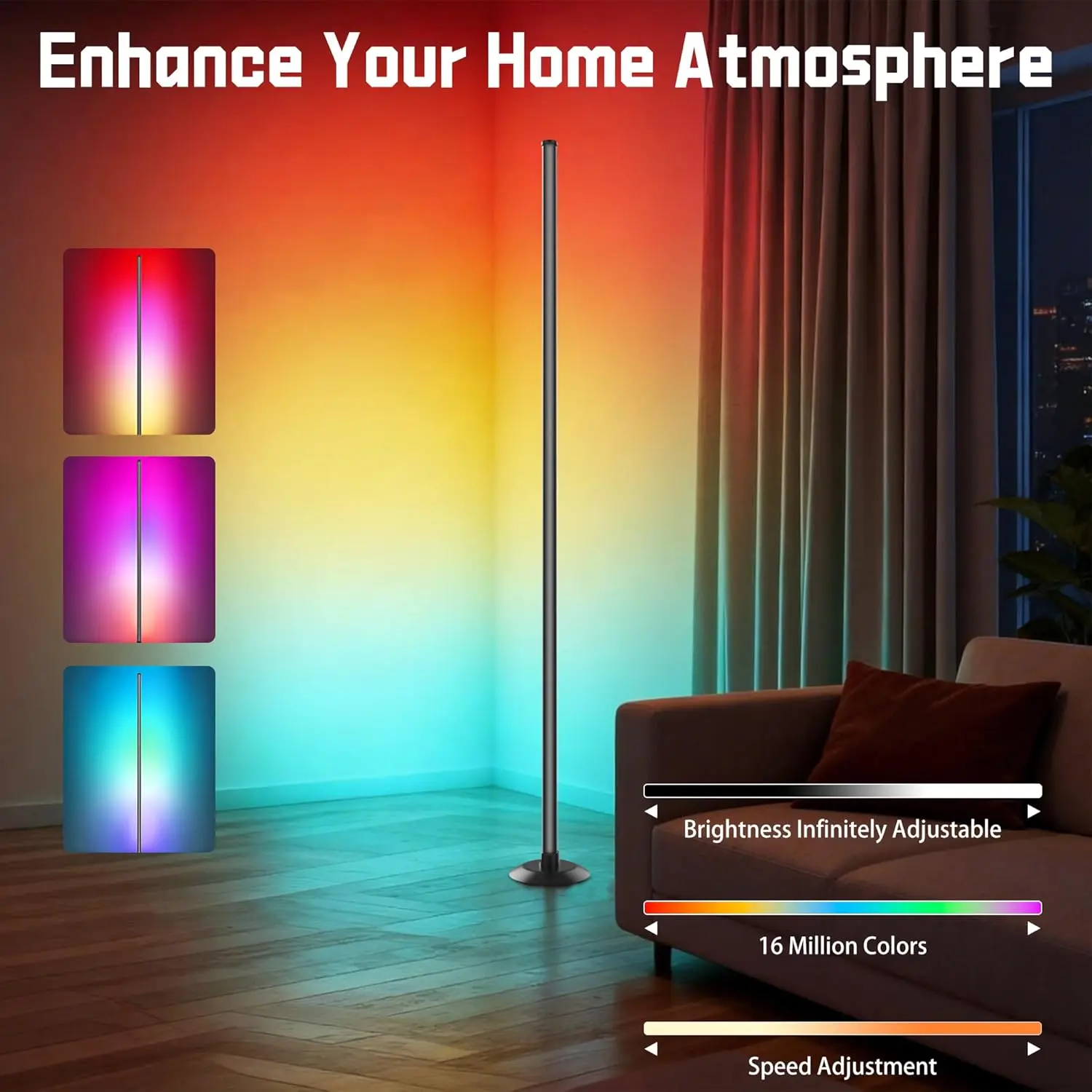 ·Music Mode & Timmer: The rgb corner lamp features 64+ selectable modes. Each mode can be applied to different scenes. floor lamp for bedroom can be your light alarm clock, pre setting the appropriate time and suitable color to make it turn on or off automatically, and you wake up in romantic lighting every morning