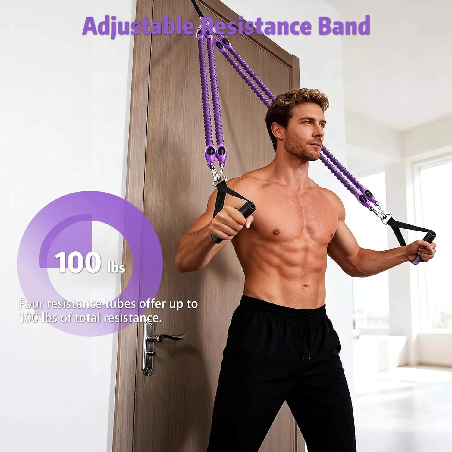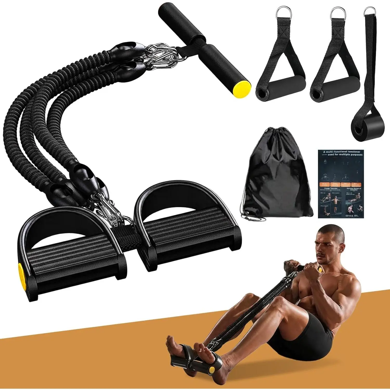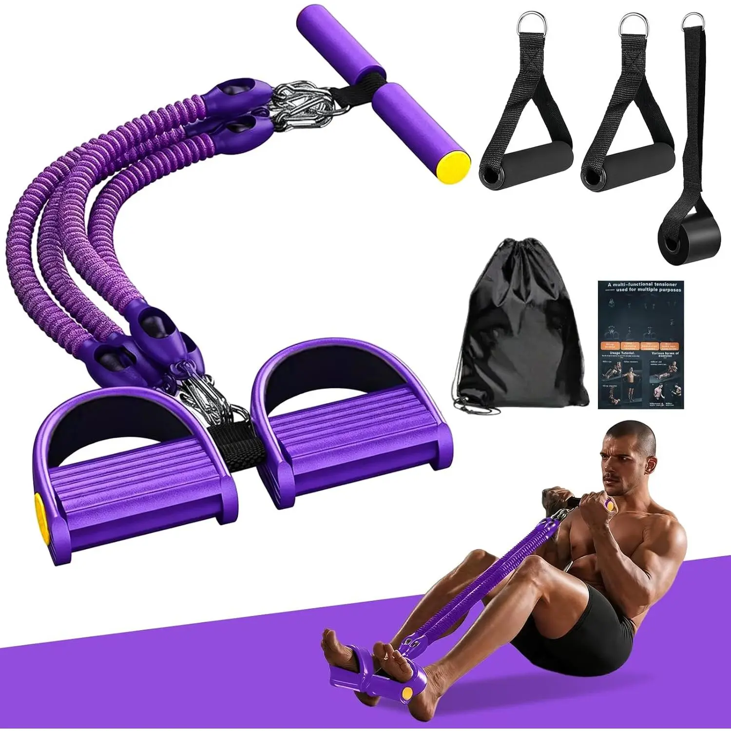 Pedal Resistance Band with Handle, Aturien Adjustable 4-Tube Elastic Bands for Exercise, Multifunctional Foot Pedal Puller, Home Gym Equipment for Legs Arms Abs