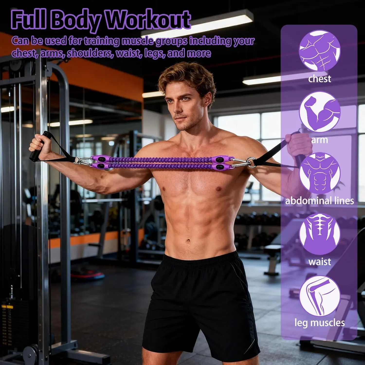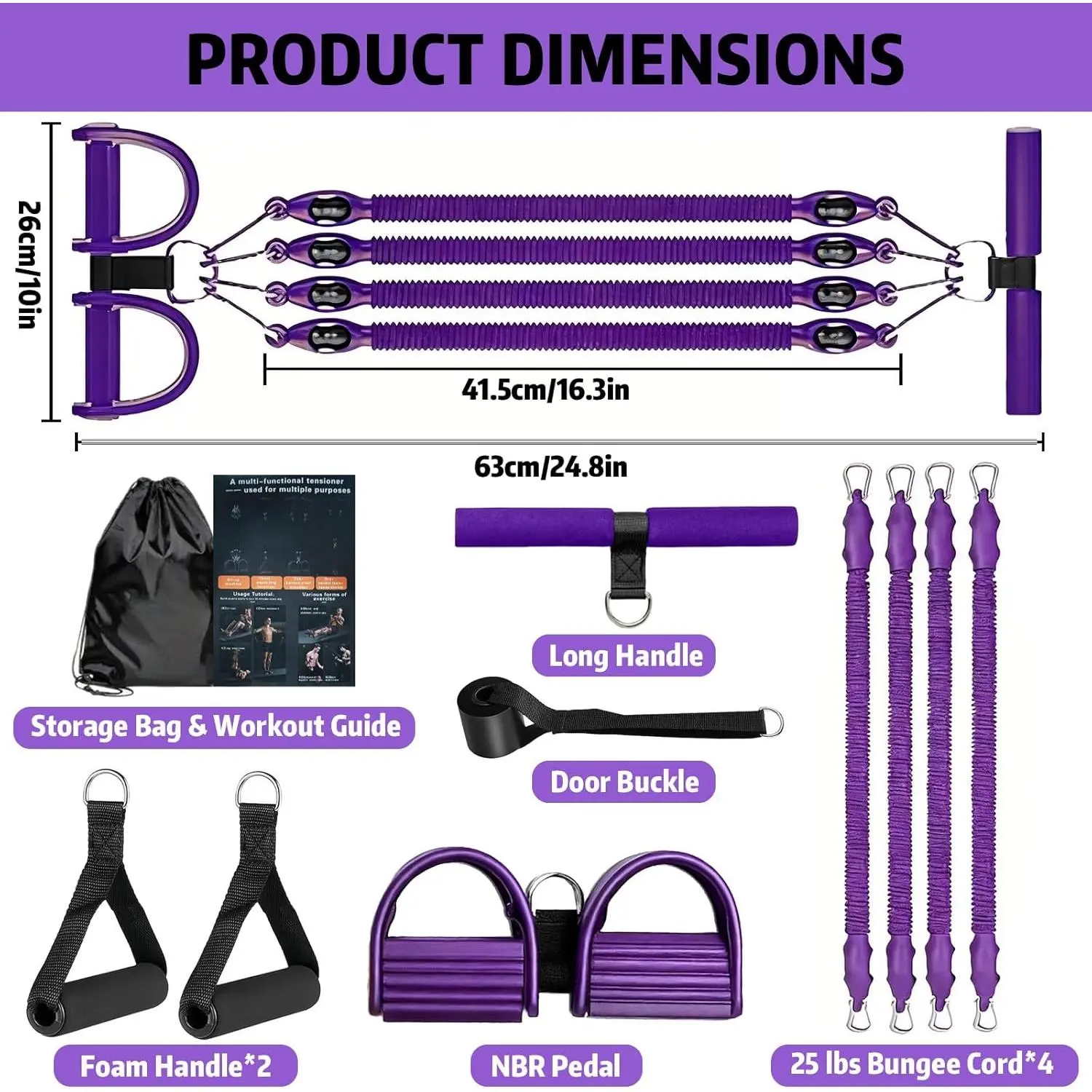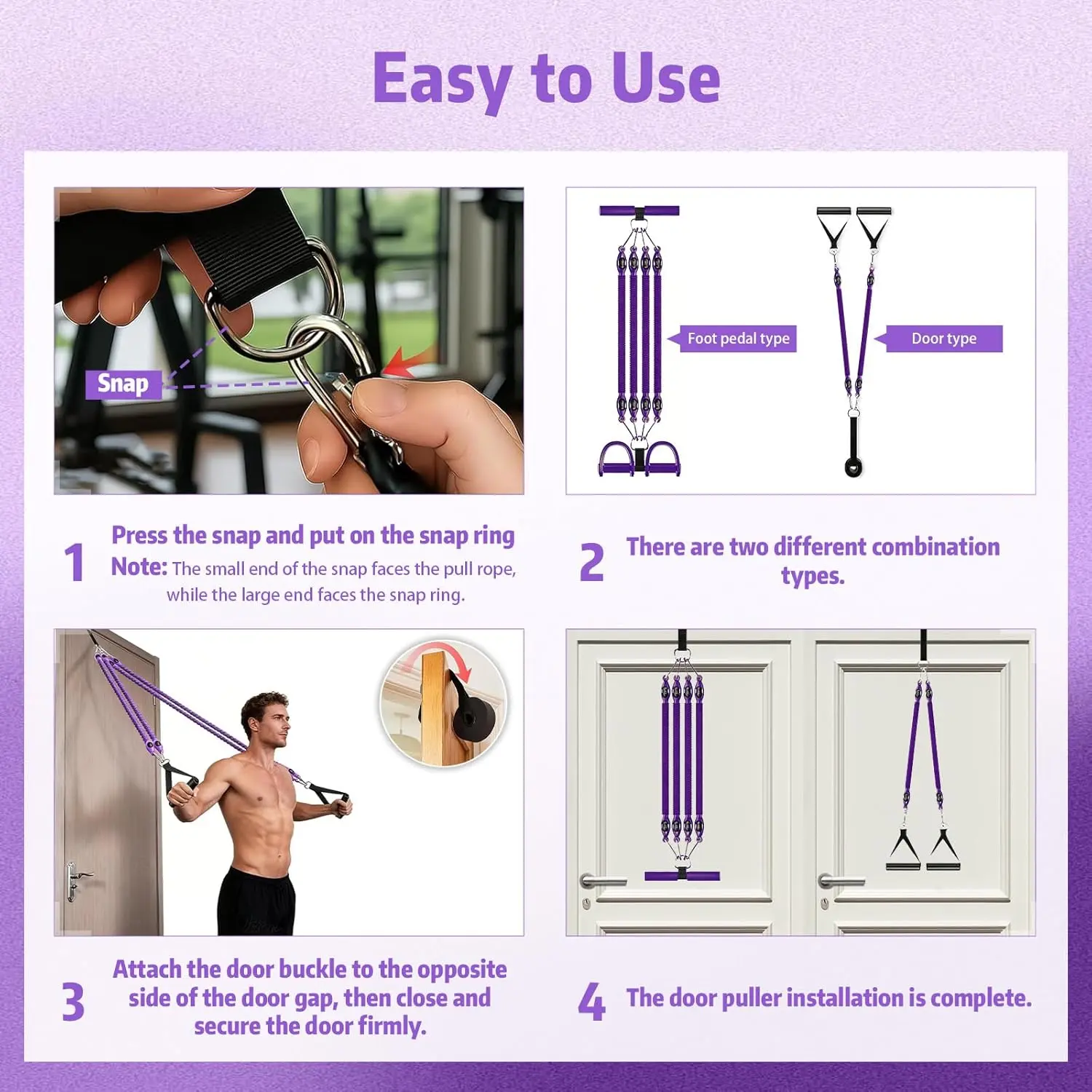 Pedal Resistance Band with Handle, Aturien Adjustable 4-Tube Elastic Bands for Exercise, Multifunctional Foot Pedal Puller, Home Gym Equipment for Legs Arms Abs
