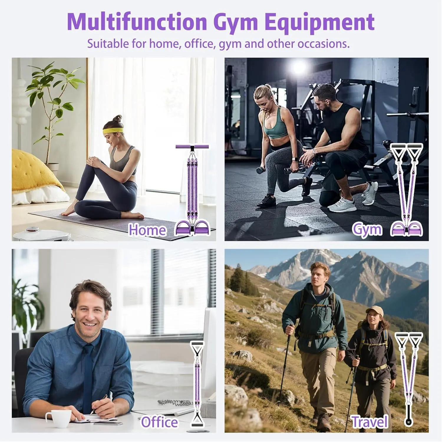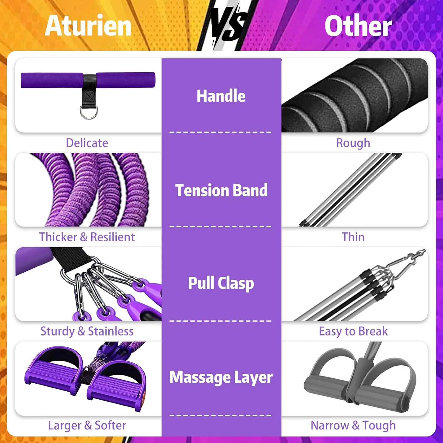 Pedal Resistance Band with Handle, Aturien Adjustable Powerful 4-Tube Elastic Bands for Exercise, Multifunctional Foot Pedal Puller, Home Workout Equipment for Legs Arms Abs