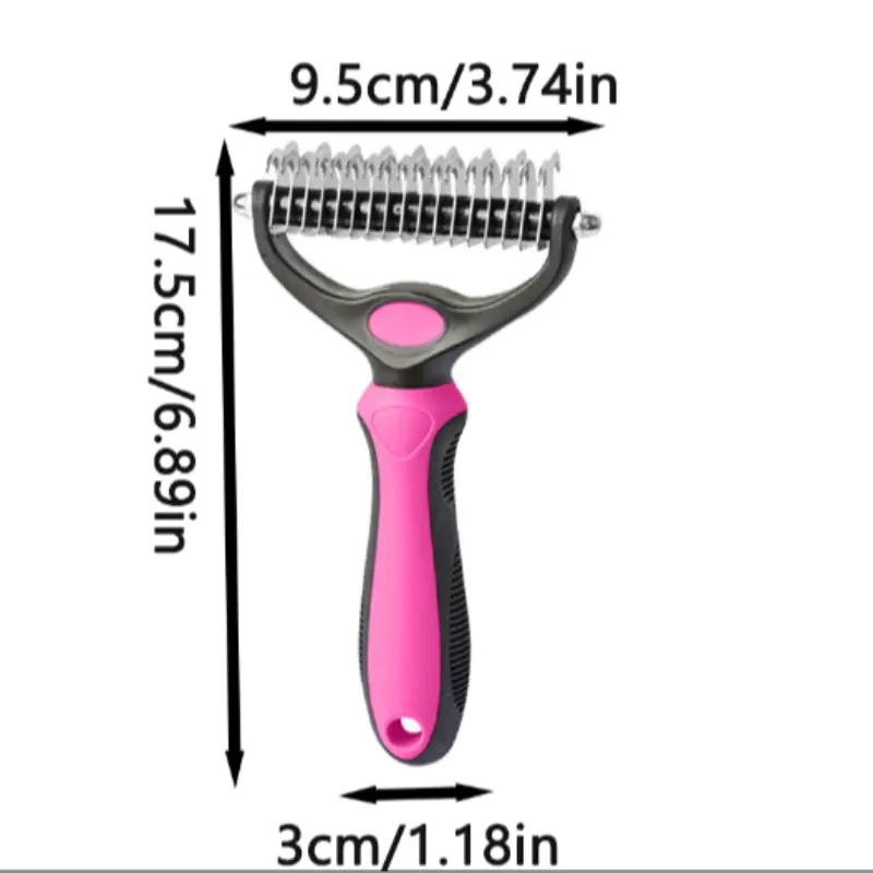 【Dual-sided functionality】: The tool features a dual-sided design, catering to both grooming and de-shedding needs for pets.