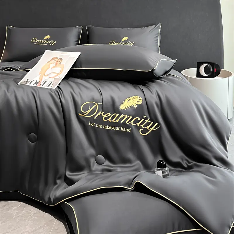 4pcs Summer Bedding Set, Silk-Like Fabric, Soft & Elastic, Ideal for Dorms, Bedrooms, Hotels, Includes Duvet, Pillowcases, Sheet