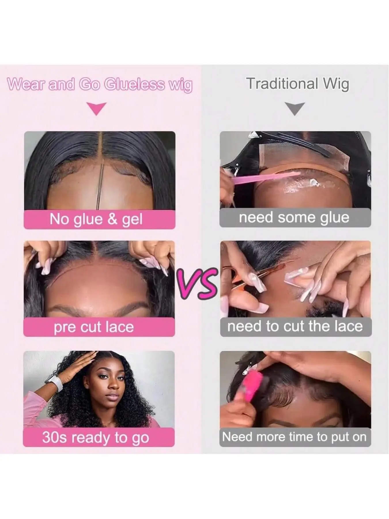 ·Glueless Wigs Human Hair Pre Plucked Pre Cut Material: New Upgraded Glueless Lace Wig, Pre Cut Lace Wigs,Can Be Weared Within 30s Which Is More Easy and Convenientt and Friendly Especially for The Beginners, Just Wear and Go