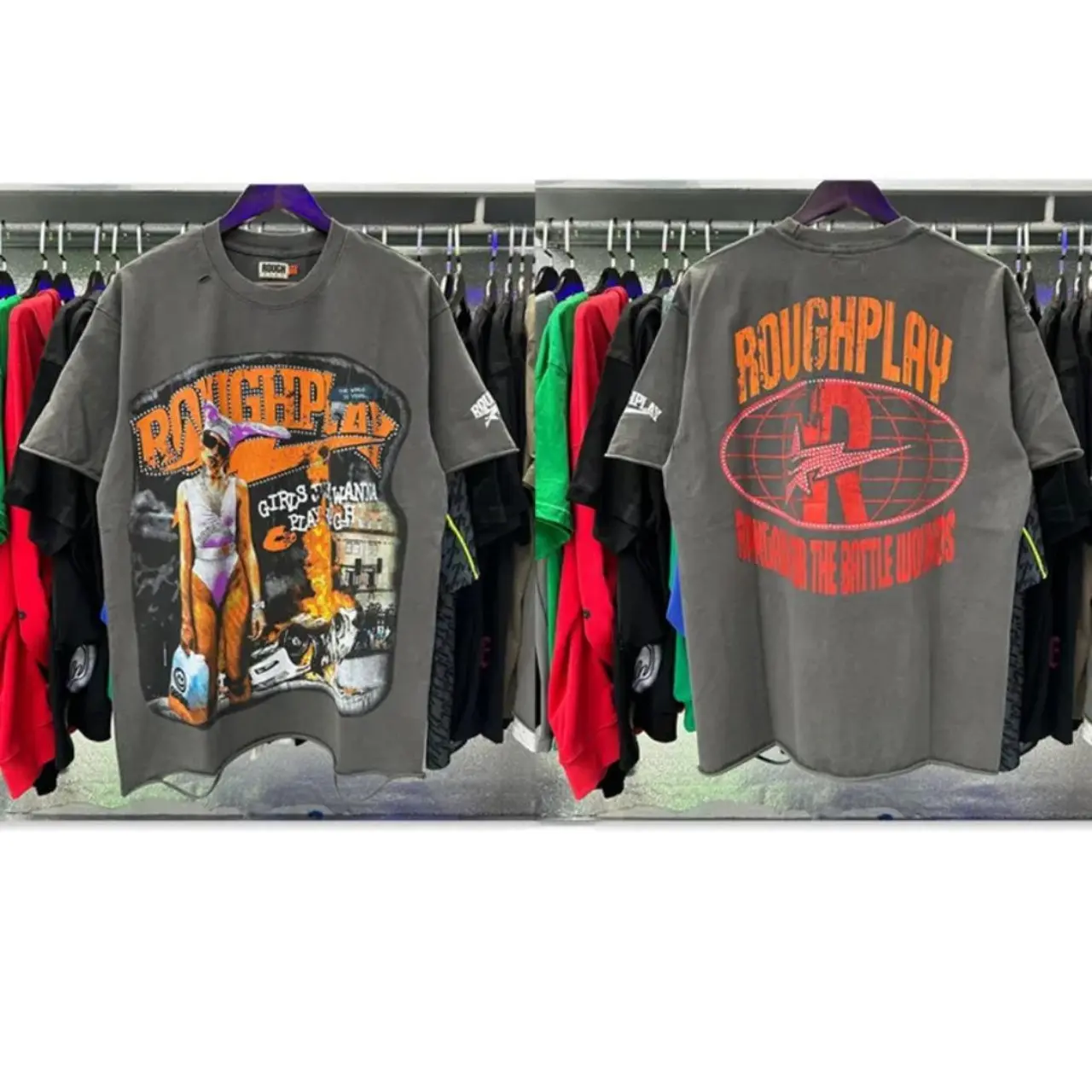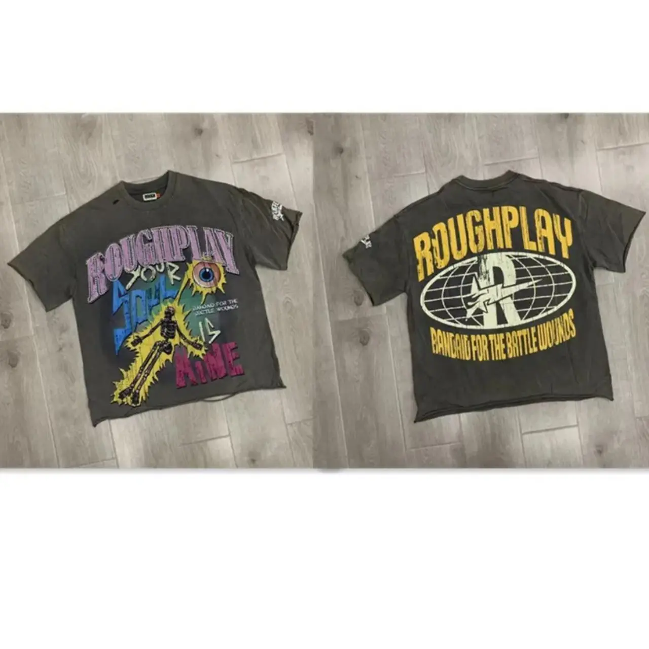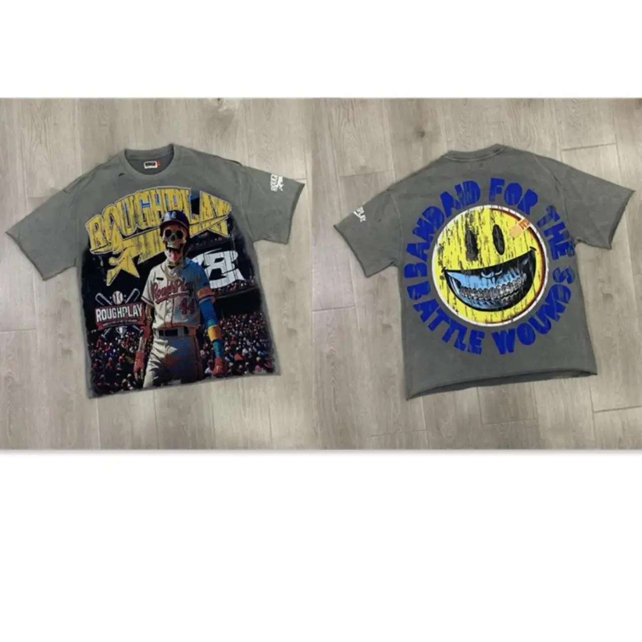 Vintage Washed Roughplay T-Shirt, Heavyweight White Ink Jesus Skull Print, Retro Rockabilly Bling Diamond Patchwork, American Hip Hop Unisex Streetwear Short Sleeve Cotton Tee