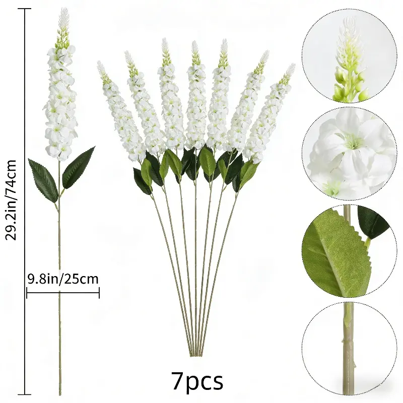 7 artificial geraniums - long-stemmed hyacinths suitable for home, outdoor, garden, wedding, and party decorations; plastic artificial flowers suitable for Easter, Valentine's Day, and centerpiece displays.