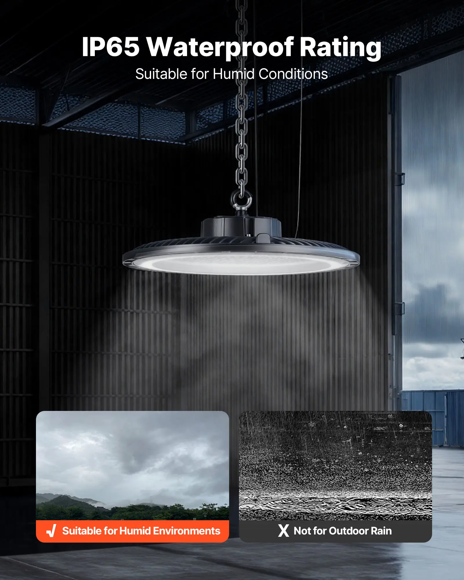 Built to Last: Features aluminum alloy for efficient heat dissipation and an IP65 waterproof and dustproof design, our UFO LED high bay lights ensure long-lasting, stable performance in damp, dusty, or industrial conditions, reducing maintenance needs