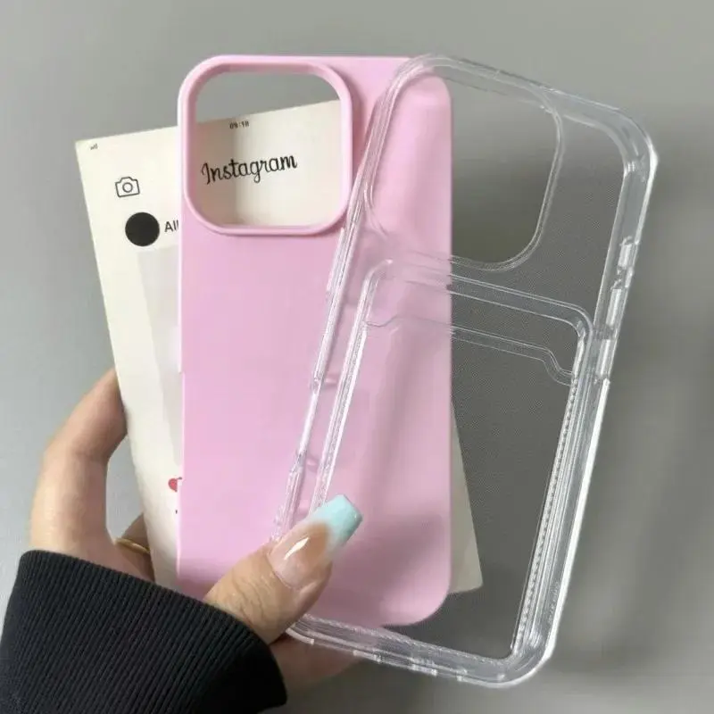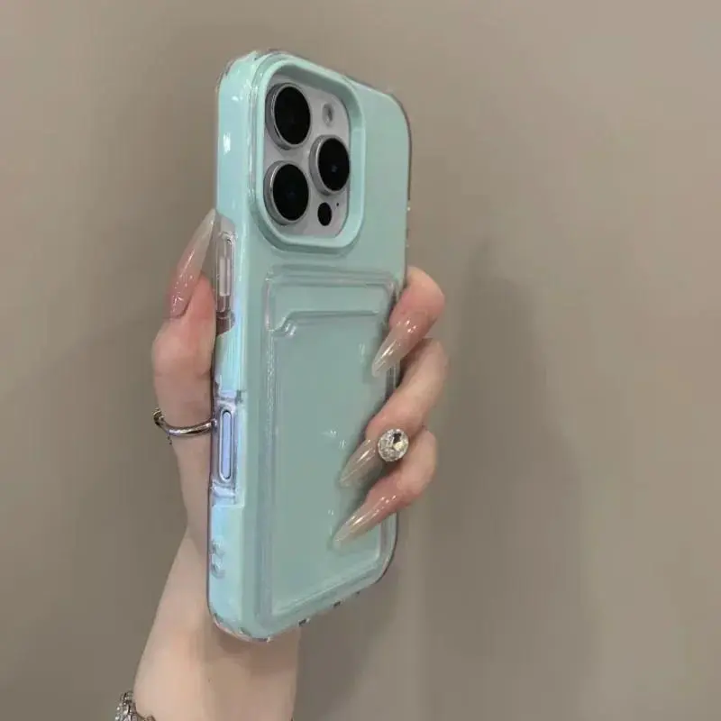 Luxury Clear Card Slot Holder Phone Case For IPhone 16 15 14 13 12Pro Max Wallet 2 in 1 Soft Protector Shockproof Candy Cover