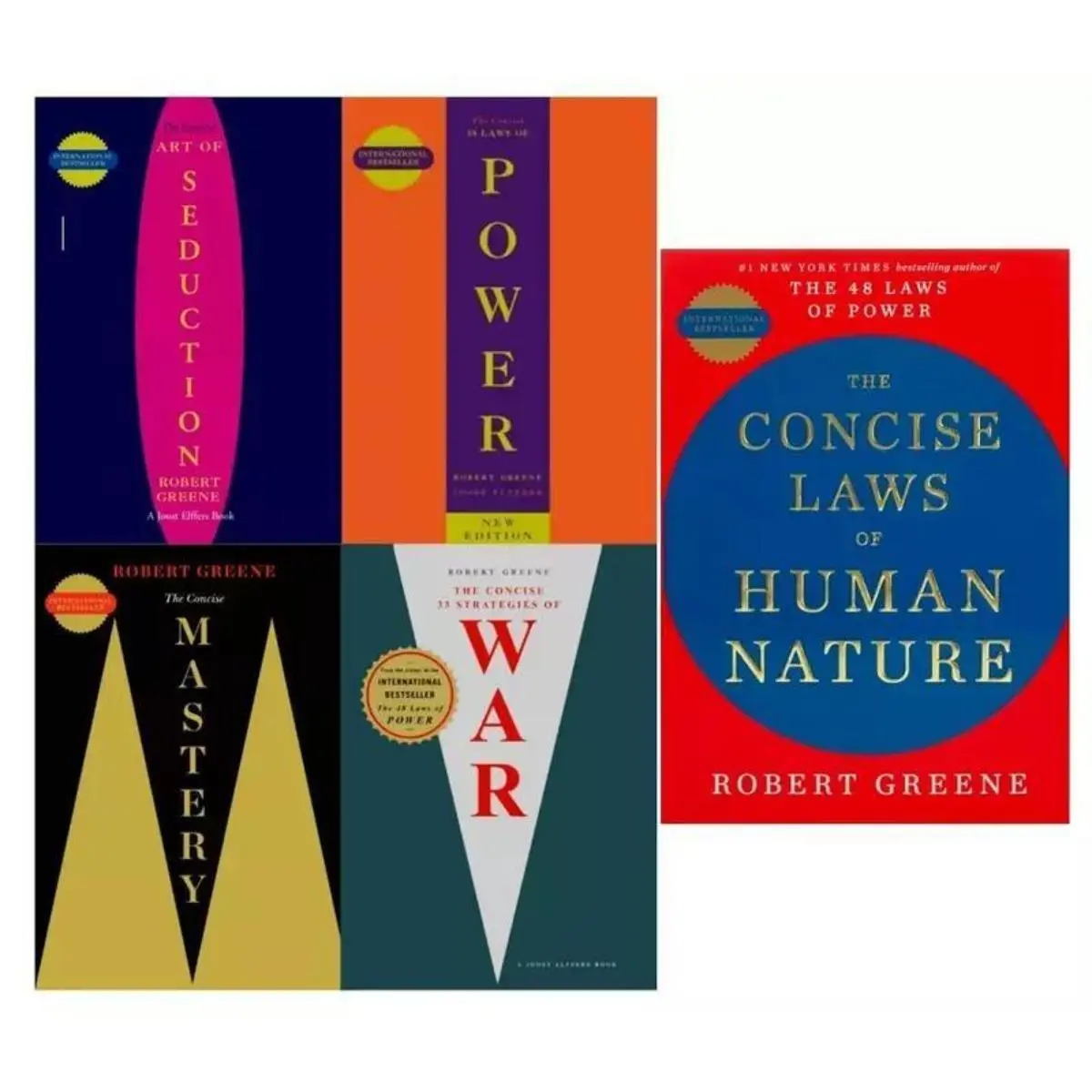 All titles are part of the concise edition series by Robert Greene. This set is your gateway to strategic thinking and personal growth. Each book offers unique perspectives on power, seduction, and mastery. It's a comprehensive resource for enhancing self-improvement and strategy skills. Dive into the wisdom of Robert Greene today!