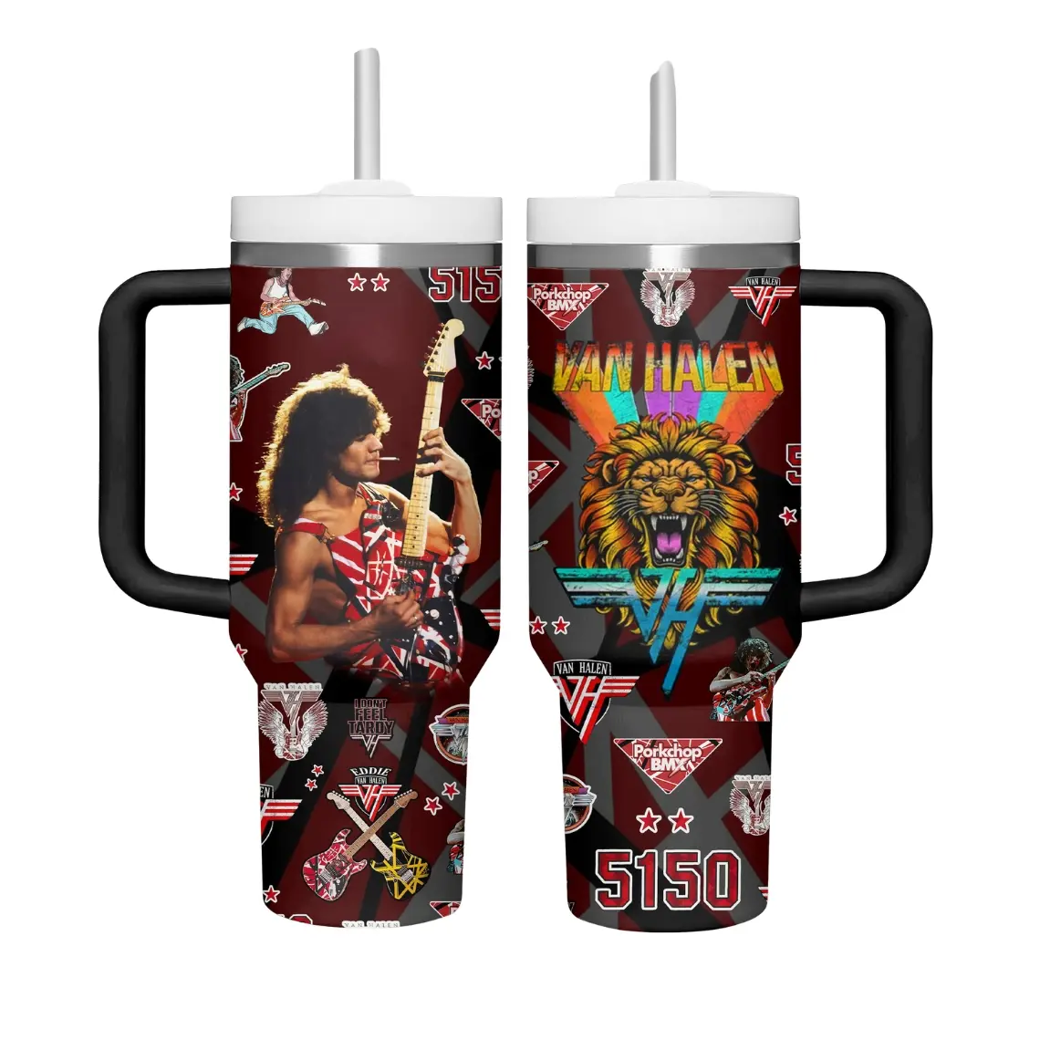 Retro Van Halen Music Tumbler 40oz With Handle, Classic Rock Band Fan Insulated Travel Cup, Vintage Rock Music Gift Drinkware