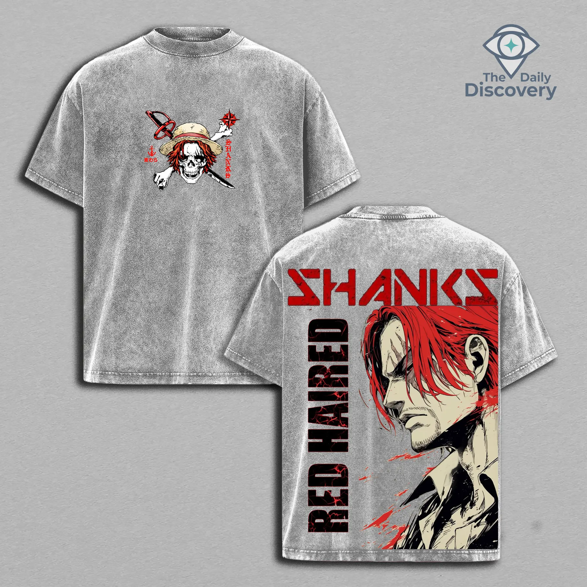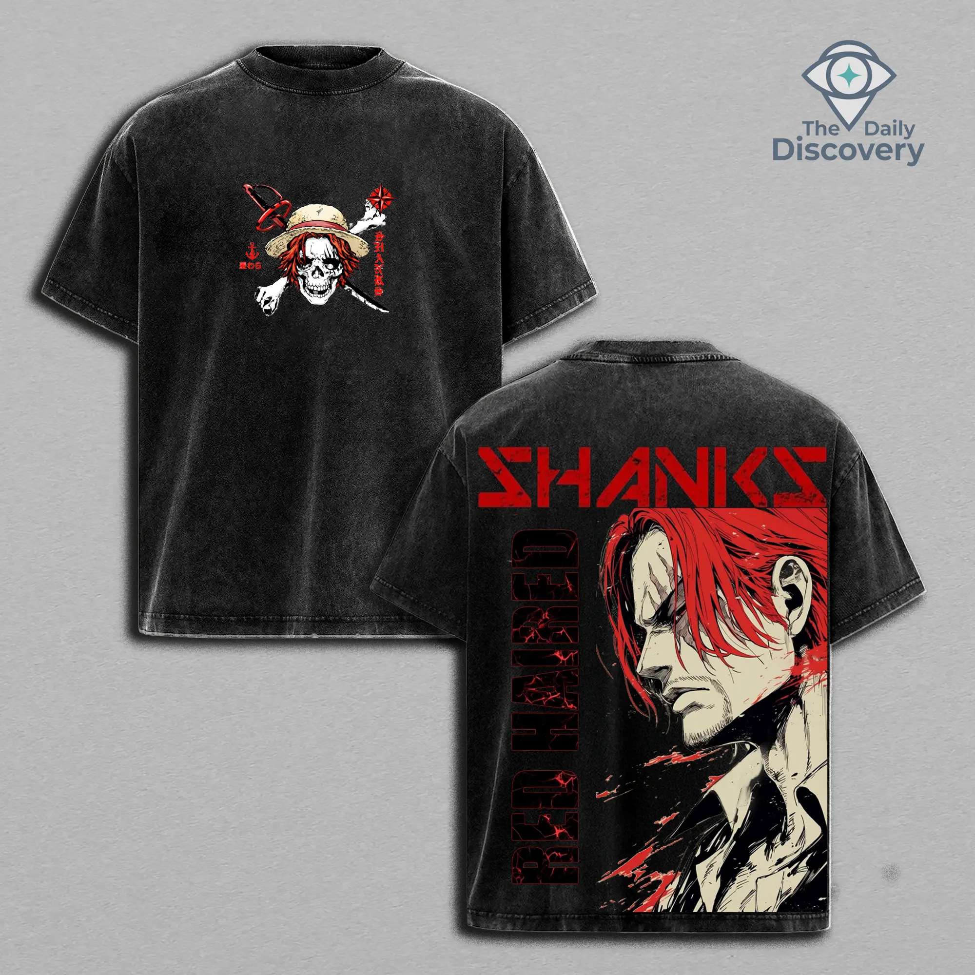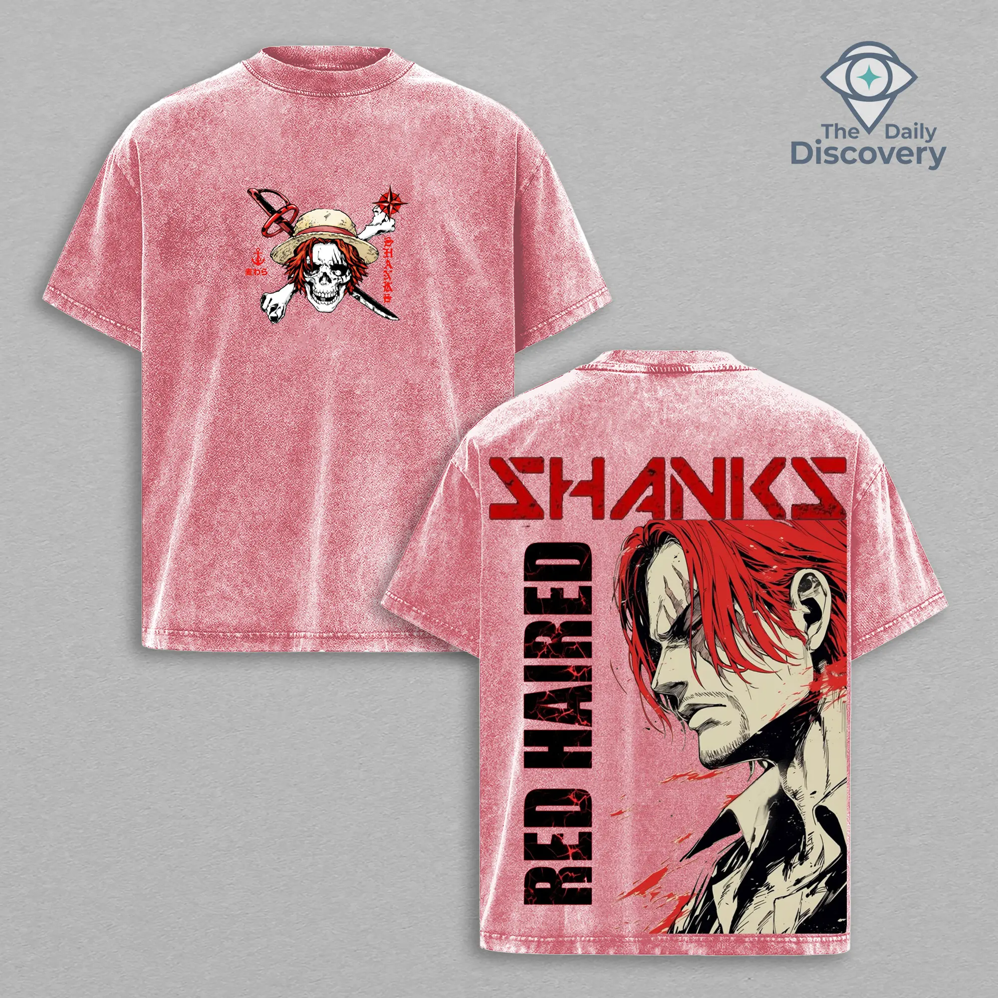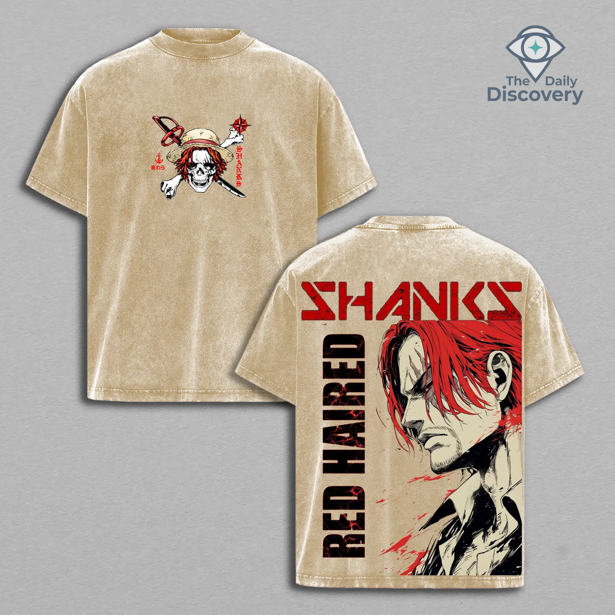 Limited Retro Limited Shanks Red One Piece Vintage Unisex Oversized Anime Graphic Tee Y2K Double Printed Acid Washed Cotton T-Shirt Streetwear, Outfits Men Top Manga Game Movie Gift Lover Merch
