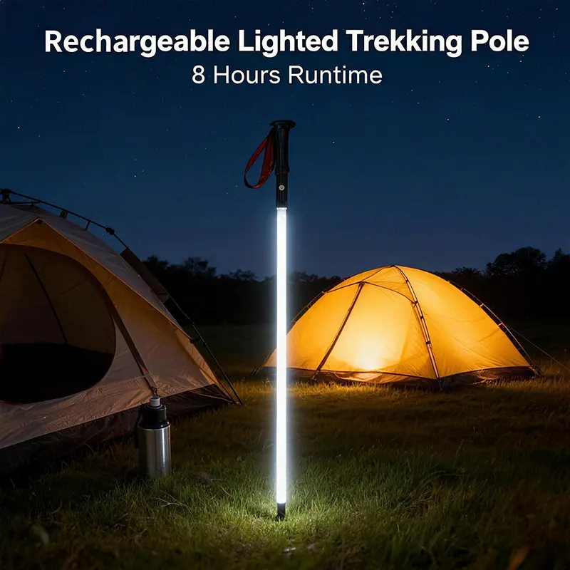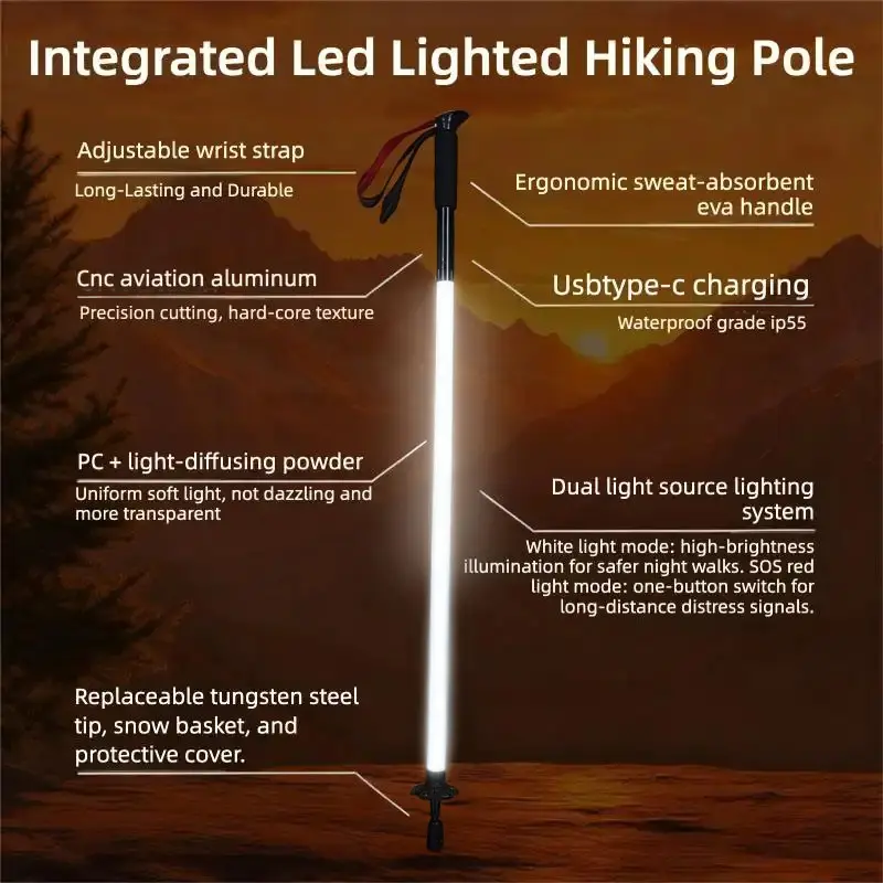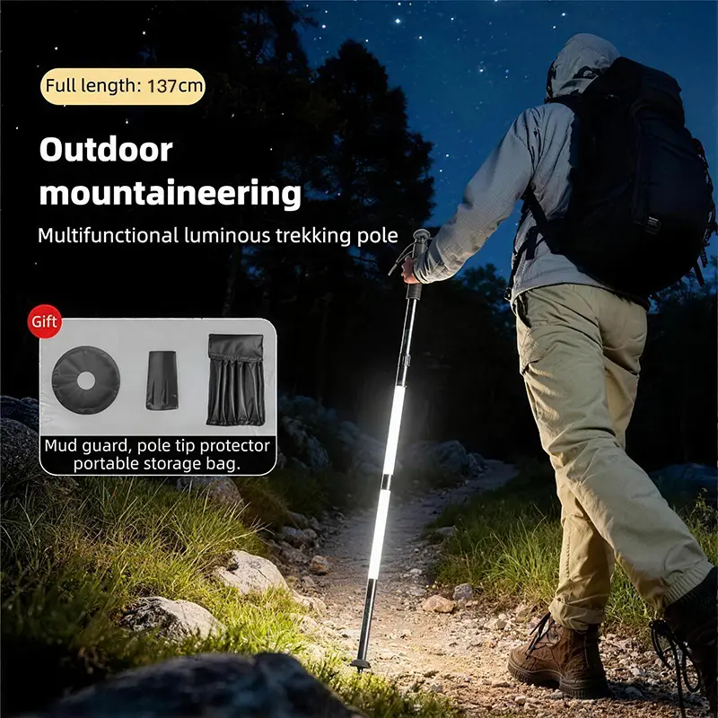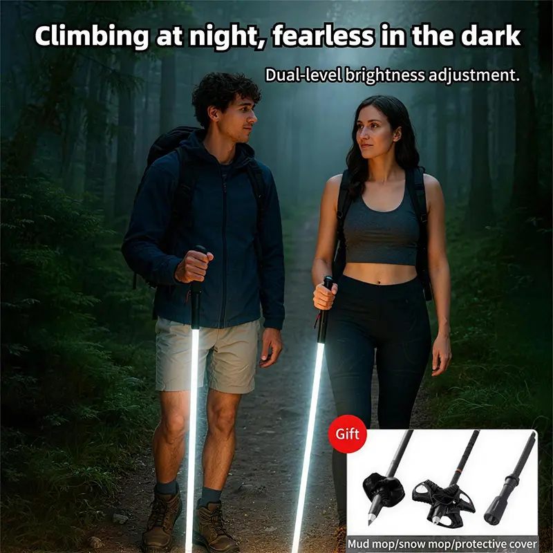 Professional-grade LED trekking poles light your way safely in the dark 🚨. The added SOS red light provides a crucial distress signal for emergencies, giving you extra peace of mind.