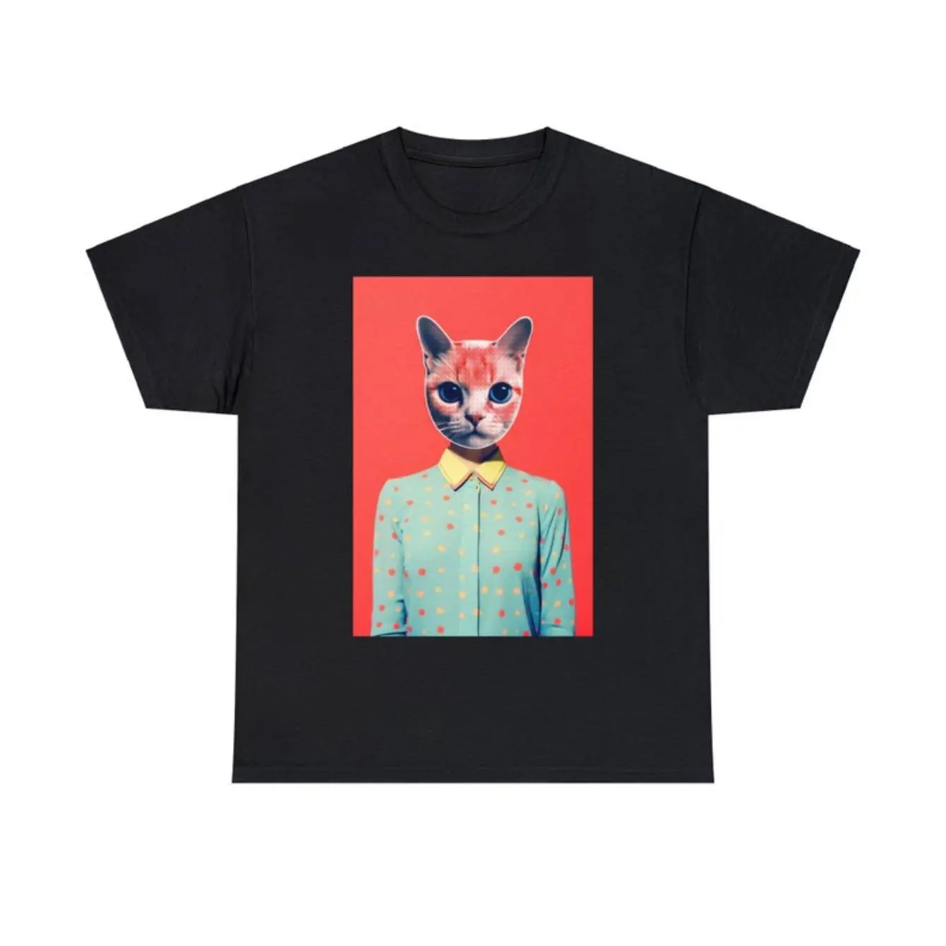 Men's cat lovers and humorous cat-themed apparel Graphic T-Shirt - Short Sleeve Crew Neck Regular Fit Casual Wear | Soft & Breathable Fabric, Durable Print, Everyday Comfort, Machine Washable, vintage and surreal a surreal portrait of a cat with a human