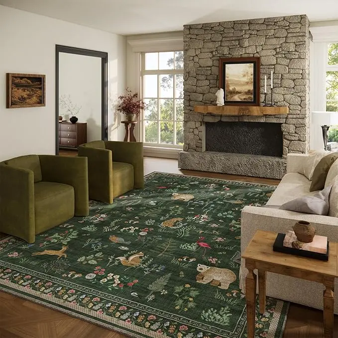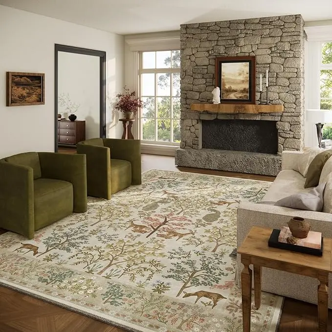 Washable Area Rugs for Living Room: Bedroom Rug Vintage Area Rug Stain Resistant Non Slip Low Pile Lightweight Soft Carpets for Living Room Dining Room Kitchen Nursery Kids Room Farmhouse