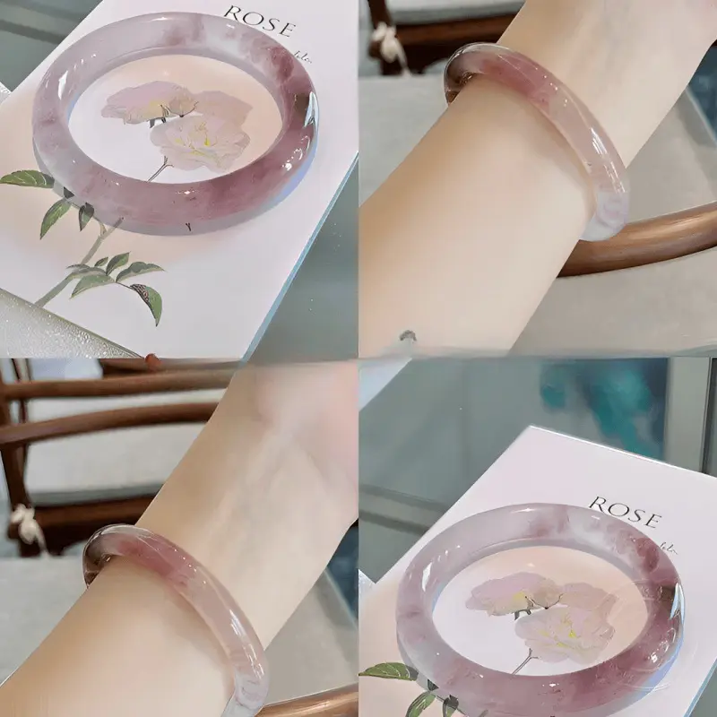 Show eternal elegance and ancient blessings with this exquisite natural ice jade bracelet.It symbolizes purity, prosperity, and eternal beauty, perfectly integrating traditional Chinese elements with modern daily wear styles.This bracelet is crafted from high-quality natural jade, presenting a stunning "ice like" transparent texture.It is embellished with delicate and flowing green flower patterns, resembling blooming clouds and mountains, making each piece unique and one-of-a-kind.