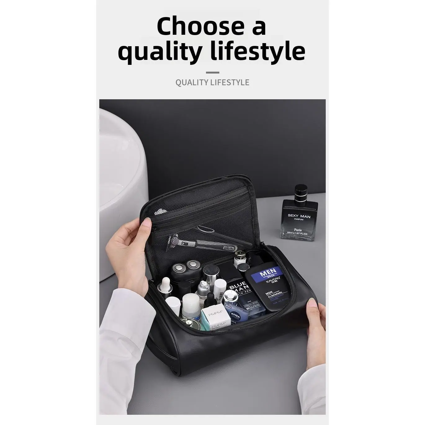 Waterproof PU Men's Travel Toiletry Bag – High-End & Large Capacity, Portable Makeup Organizer for Men, Perfect for Travel & Daily Use