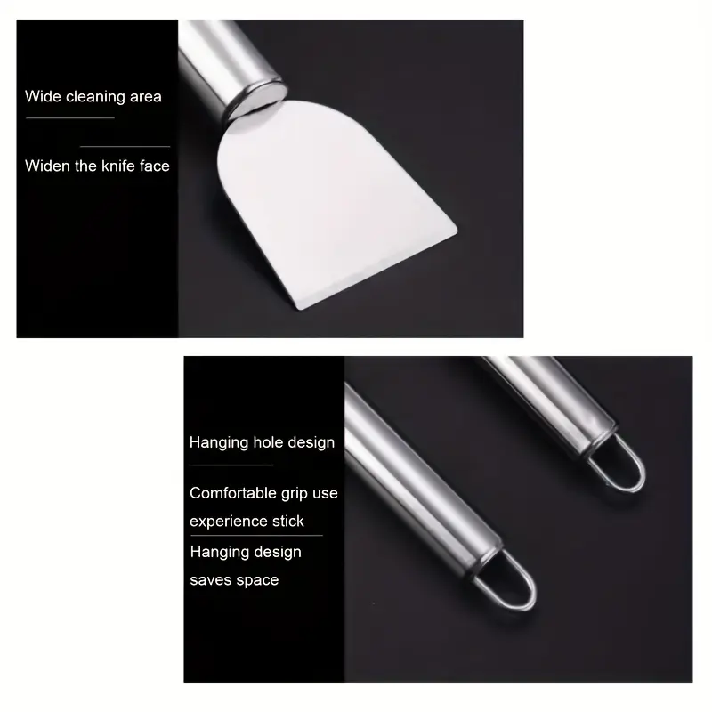 Built from high-quality, rust-resistant stainless steel, this scraper withstands frequent use. It handles tough scraping and daily cleaning without bending or breaking. Its durability makes it a reliable choice for all your cleaning needs.
