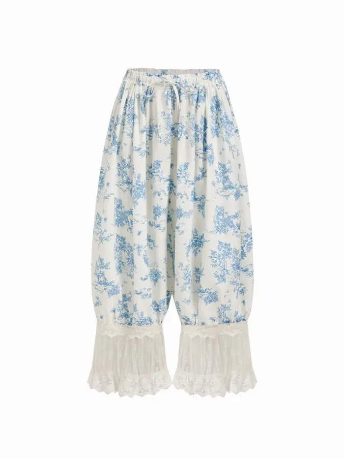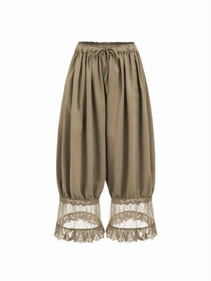 Mid Rise Lace Patched Drawstring Cropped Bloomer Pants