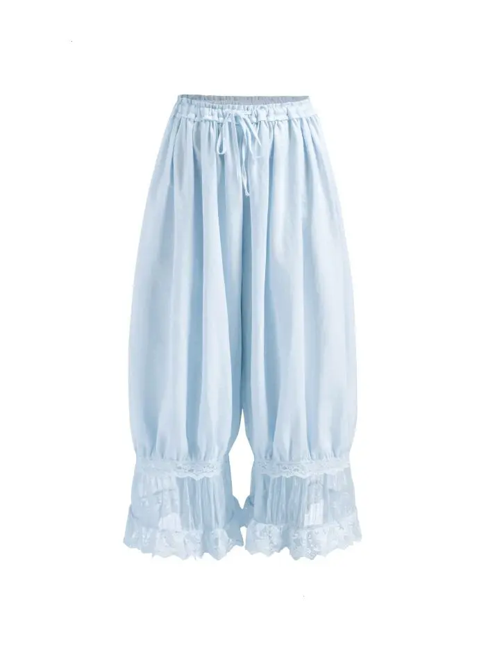 5. Mid Rise Lace Patched Drawstring Cropped Bloomer Pants