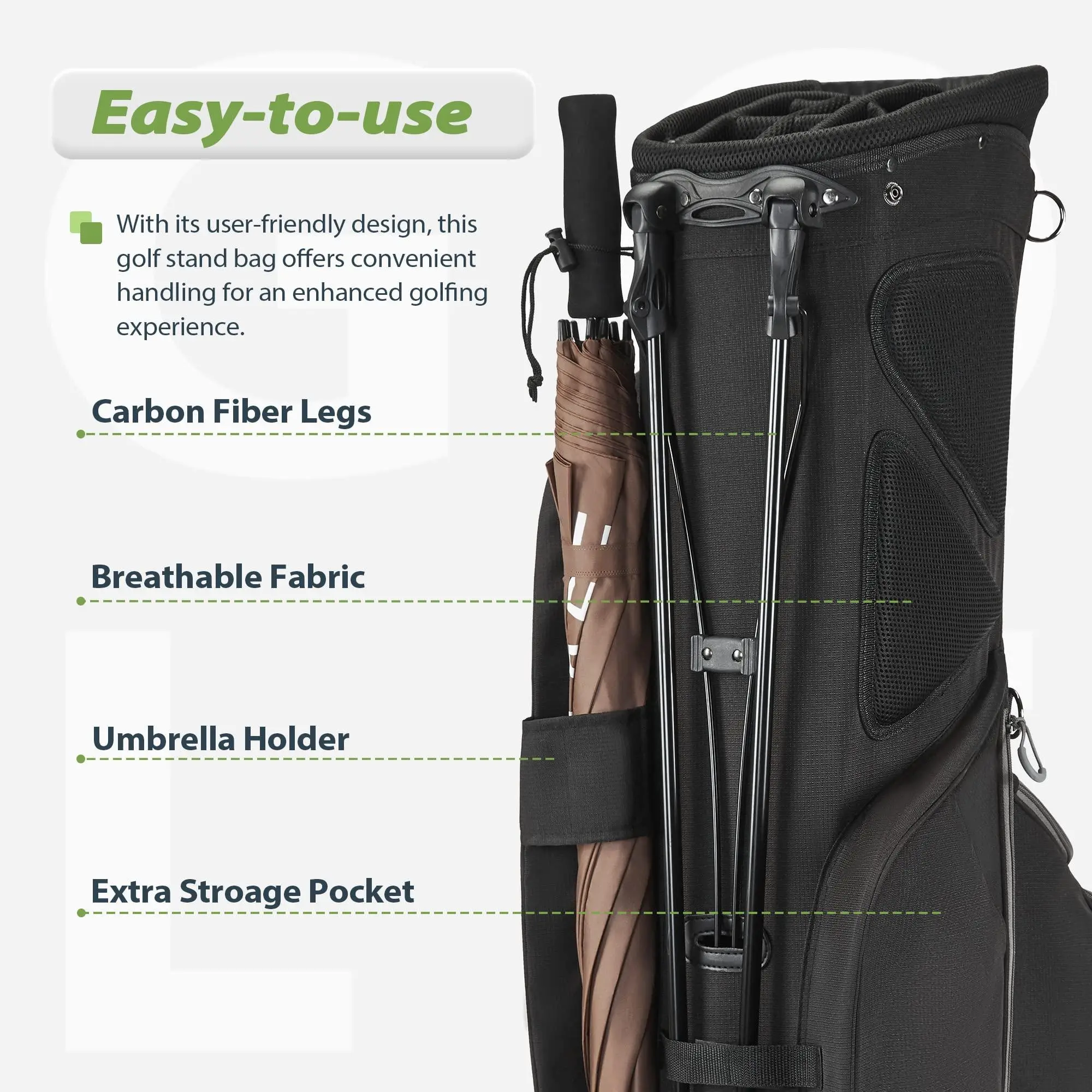 【Lightweight Golf Stand Bag】-- Made with durable materials with convenient top handles and weighing only 5.5 pounds, making it easy to load the golf stand bag in or out of your vehicle or on or off the golf cart