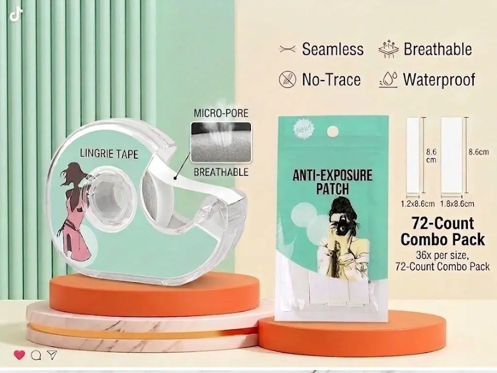 72 Count Double-Sided Clothing Tape Strips, Clear Invisible Adhesive for Securing Shirts & Dresses, Disposable PET Fashion Tape for No-Slip Outfit Hold, Ideal for Summer Wear