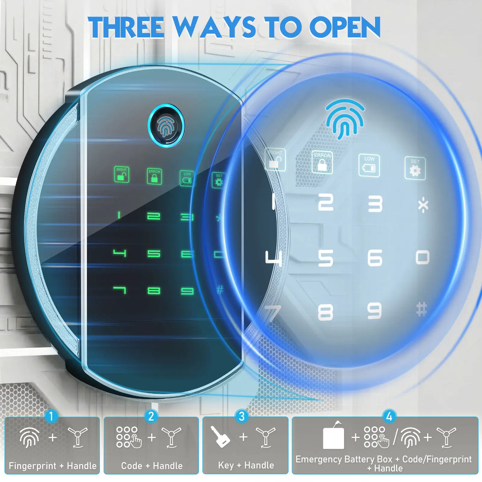 ·【4 Unlocking Methods】This long gun safe features 4 different methods of accessing firearms, it’s very convenient for you. 1. fingerprint+turn handle(fast access); 2. password+turn handle(fast access); 3. emergency key+turn handle(used for the first time, forgotten password or battery dead); 4. emergency battery box + password/fingerprint+turn handle(battery dead).