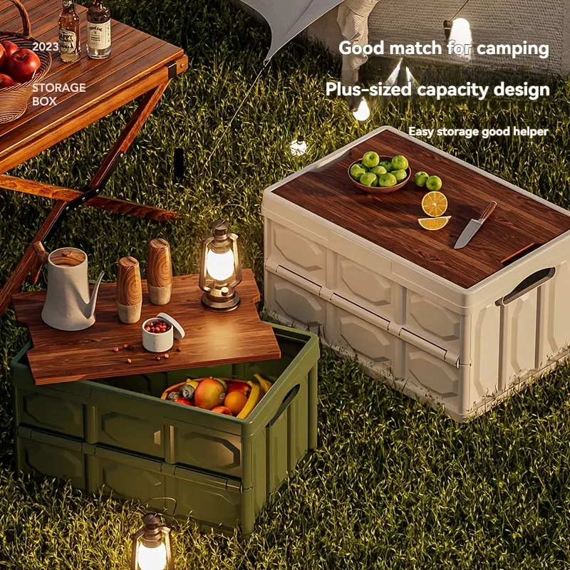 Outdoor Multifunctional Storage Box with Wooden Lid, Large-capacity Organizer, Portable Picnic and Camping Box, Stackable Storage Box, Holiday Gifts Suitable for People.