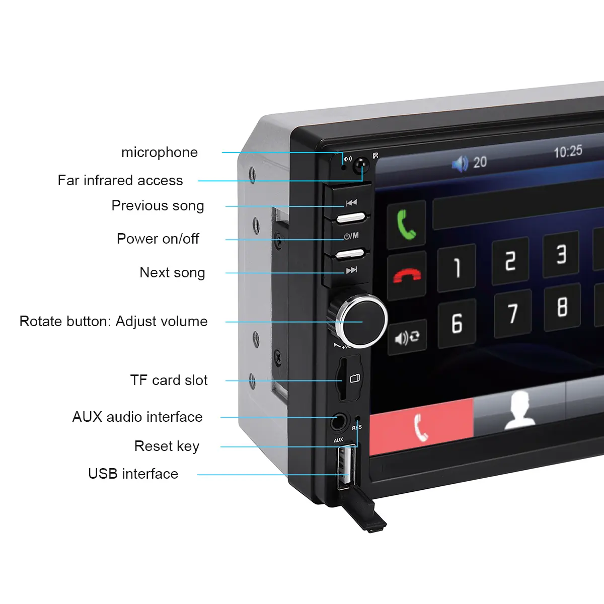 ♦ Multi-Media Playback: Supports MP3/WMA/APE/FLAC/WAV audio & BT/APE/WAV/WMA/MP3/FM video, USB/SD/TF/AUX input