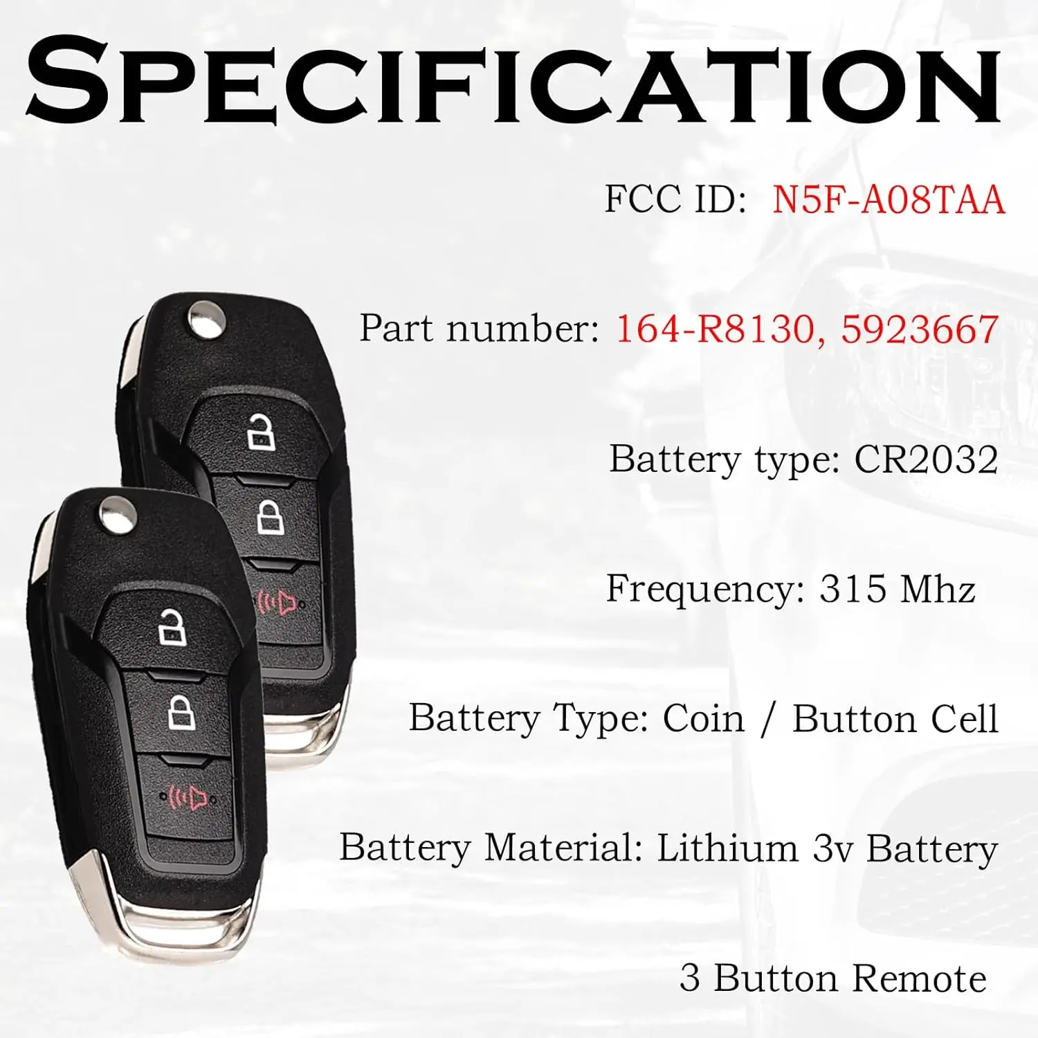 Flip Key Fob Replacement Fits for Ford F-150/F150 2015-2024 F250 F350 2017-20...