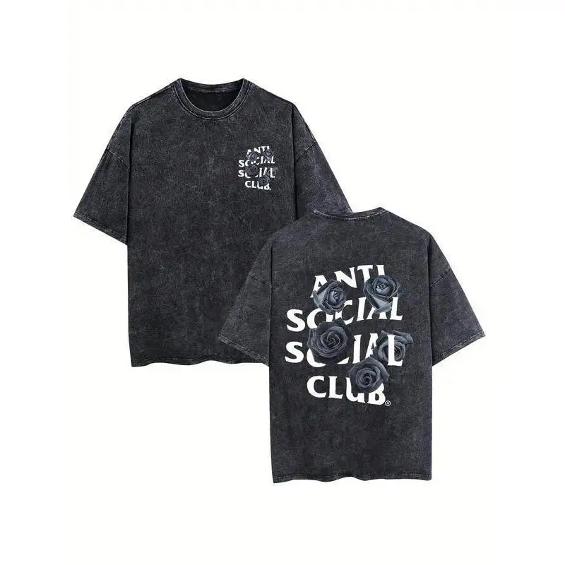 Anti Social Social Club Men's Rose Graphic Vintage Washed Heavy Cotton T-Shirt Retro Double-Sided Water Wash Top - Casual, Womenswear
