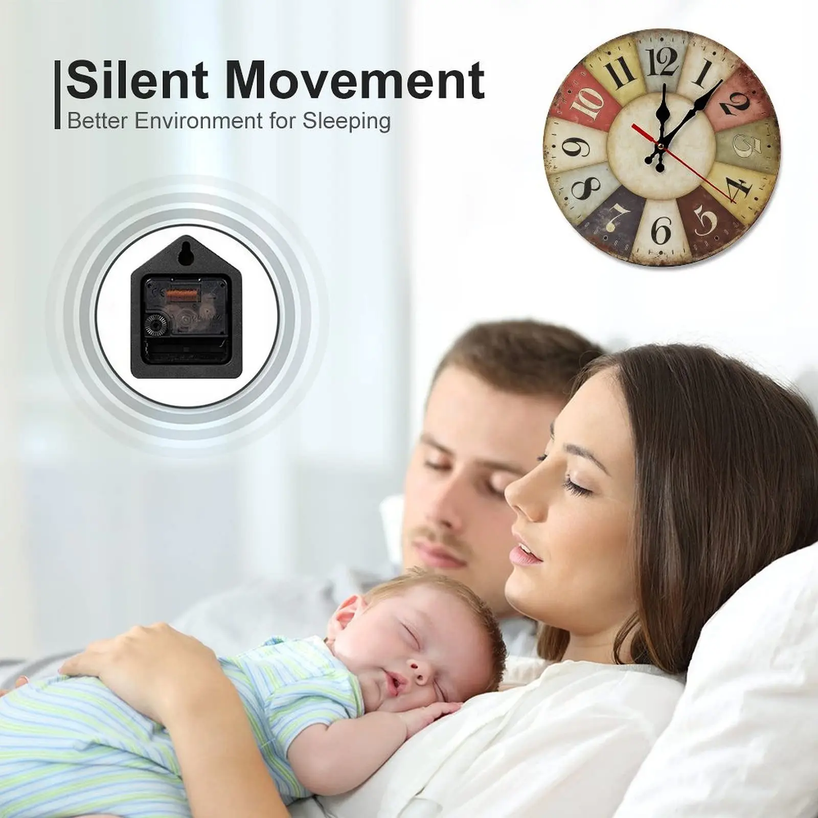 Silent Sweep Movement: Enjoy a completely noise-free environment—no loud ticking to disturb your work, reading, or relaxation, ideal for bedrooms, studies, and quiet spaces