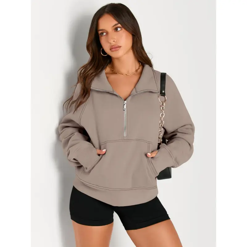 ★Material: Cotton and polyester,these materials are thick and comfortable,keep you warm in the fall and winter.★Design: women's fleece lined athletic hoodies, fall outfits for women, women pullover sweatshirt,teen girls y2k clothes, drop shoulder collar, kangaroo pockets, long sleeve with thumb holes, help keep your sleeves in place.★Match: Easy To Match with Pants,Jeans,Joggers,Sweatpantsand You Can Match Anything You Like Inside,Like Shirts,Tank Top,Crop Top, Vest Etc★Occasion: This pullover sweatshirt is suitable for suitable for casual, daily wear, office, playing ball, party, school, running, sport, gym, dancing, skating, hiking, biking, yoga, spring, fall and winter.It's also a good gift to your friend or family.★Fashion: 1/2 zip up collar sweatshirt, the zipper works smoothly, solid color, stand collar, y2k clothing, fleece lined, soft inside, relaxed fit, crop top